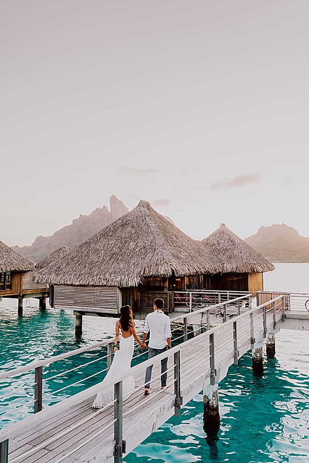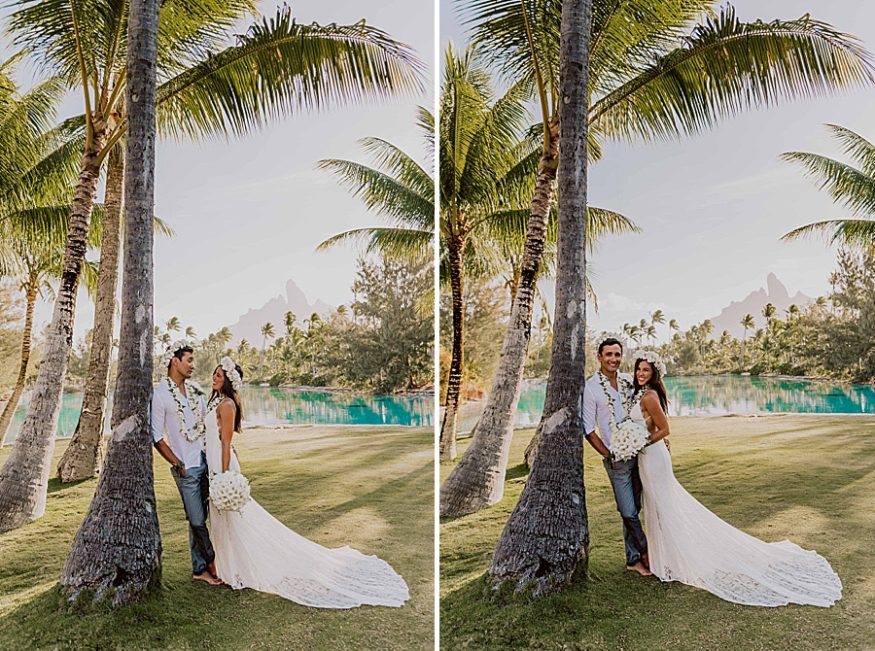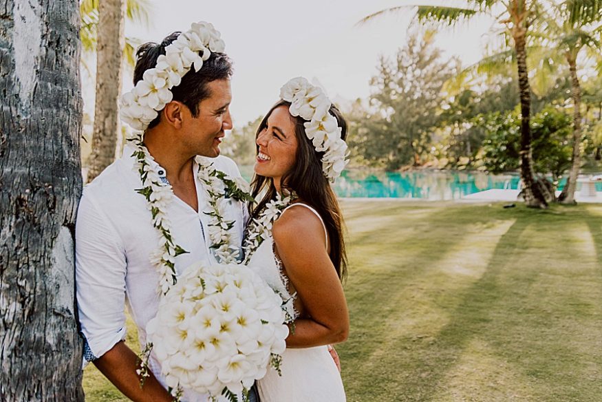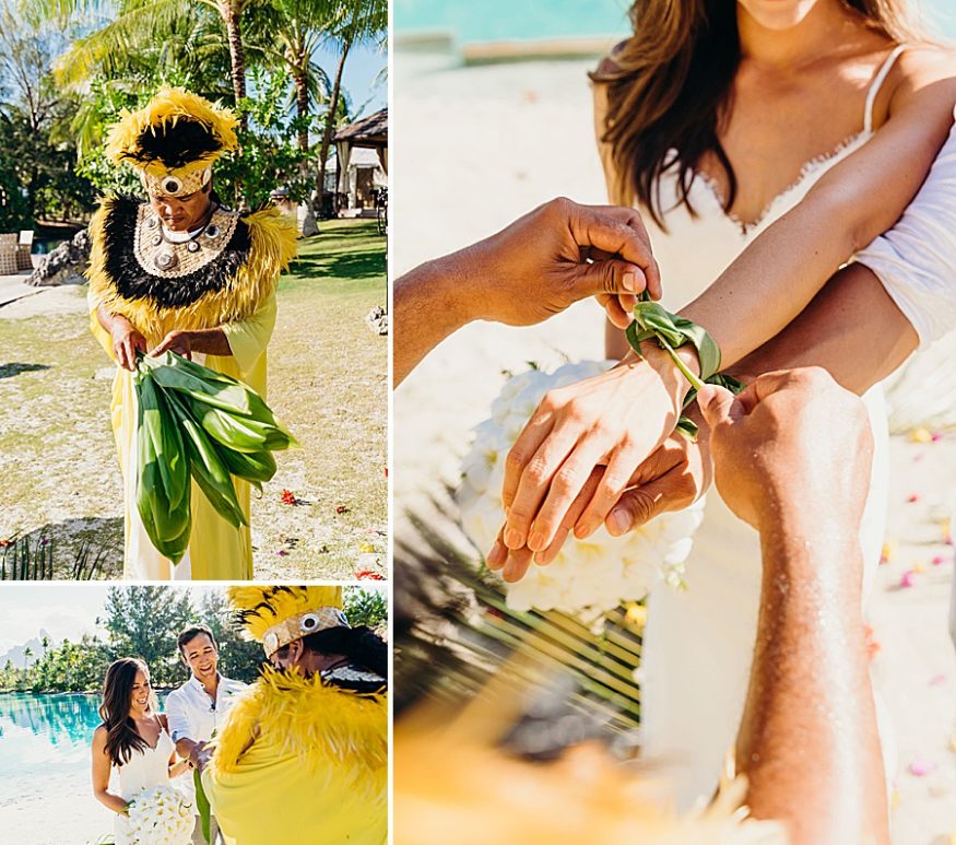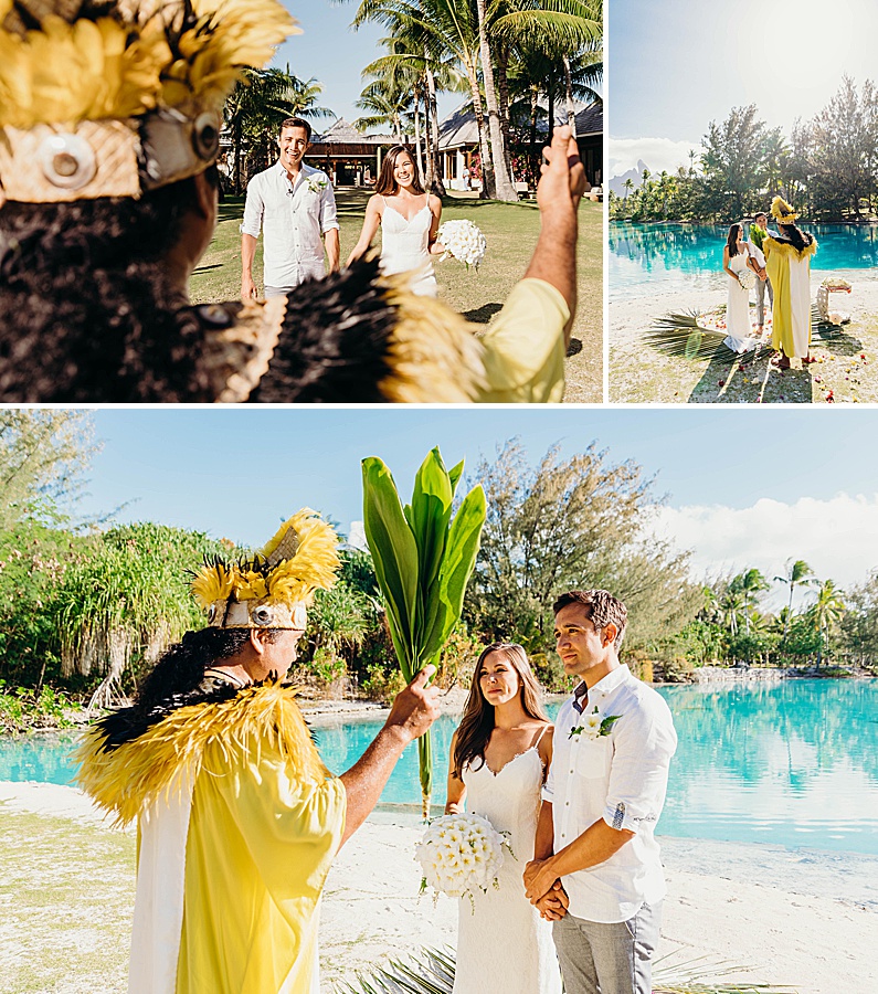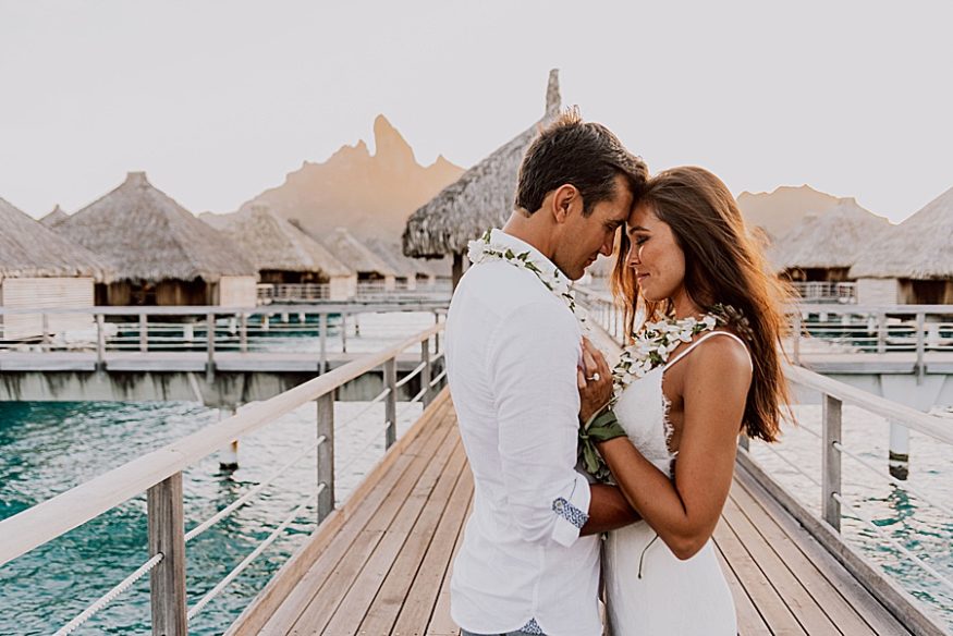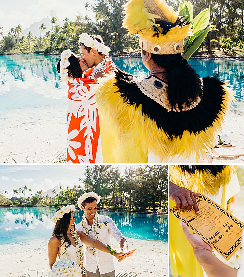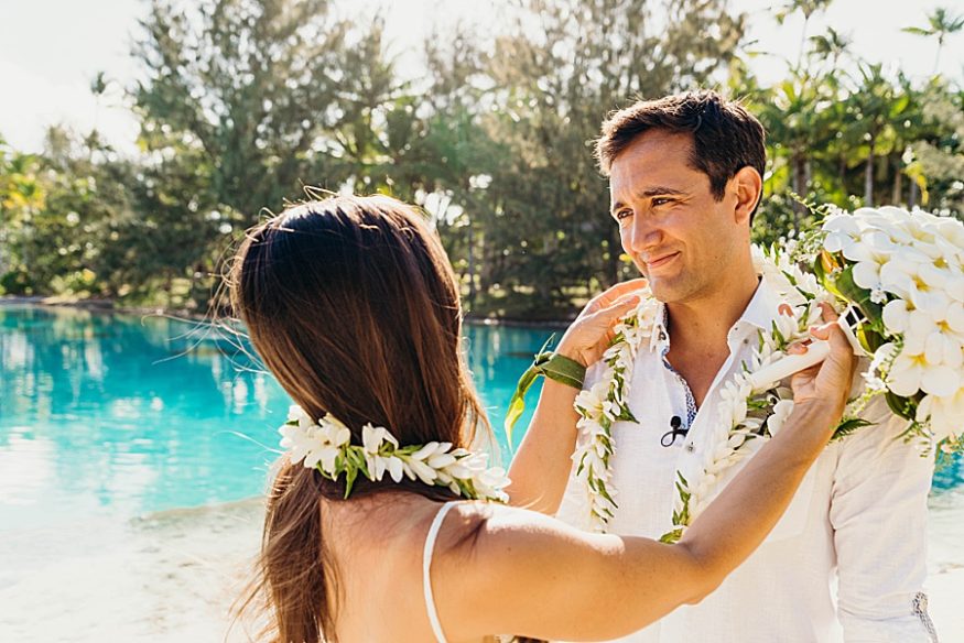 The elopement process at the St. Regis was wonderful, and their ceremony packages were great. We stuck with a simple white plumeria for our flower leis and crowns which were very true to the culture and theme of the French Polynesian region. And we included our hand written vows of 10 promises to each other .
