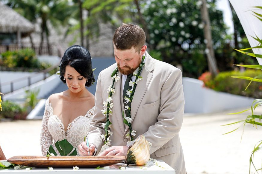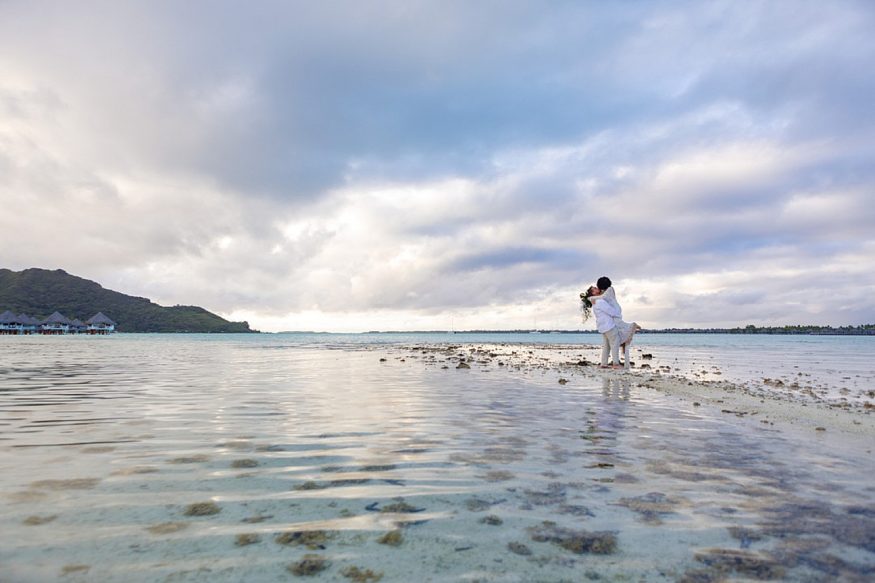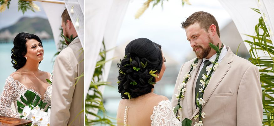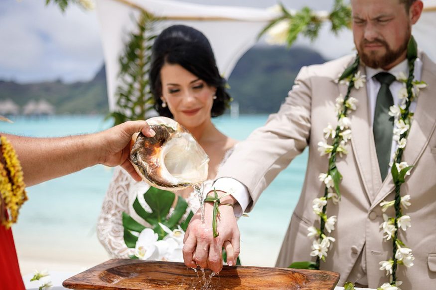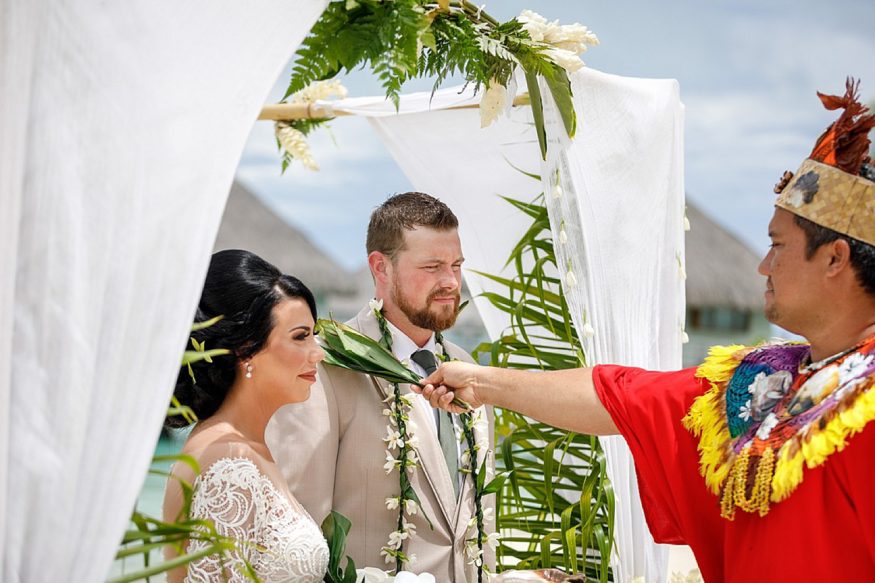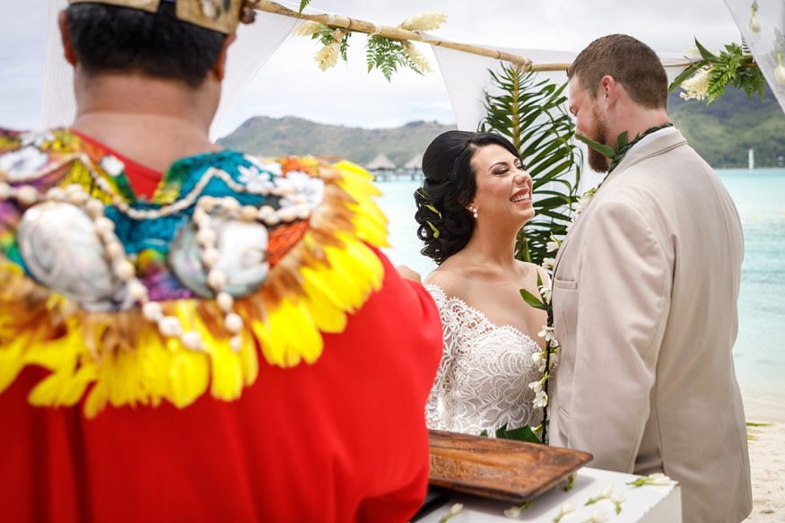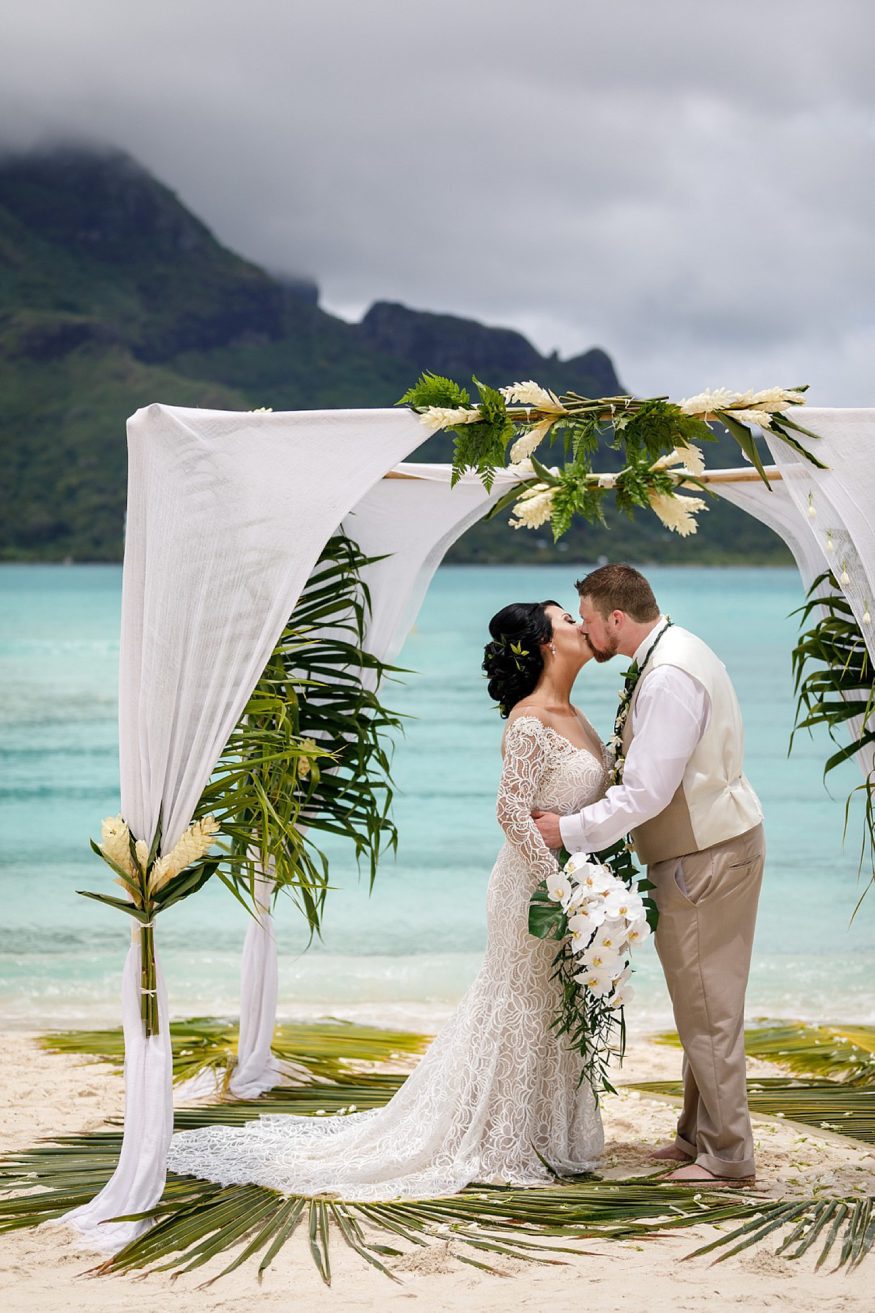 The entire day from start to finish was a tropical fairytale.There was concern for rain during our beach ceremony and even this news did not alter my mood or outlook for the day. I was preparing to become married in the most beautiful place on earth. How could I not be happy? One hour before our ceremony the rain clouds dissipated and the sun began shining through. Mount Otemanu became more visible and its lush green was highlighted by the suns rays. We were able to have our dream beach wedding under the magical Polynesian sun.