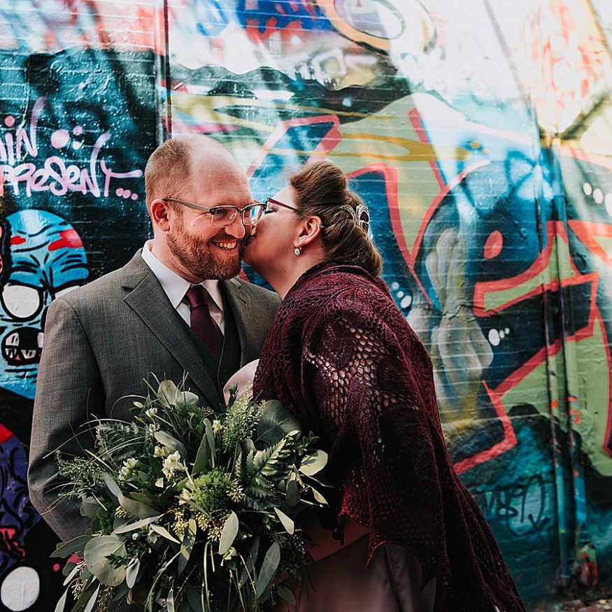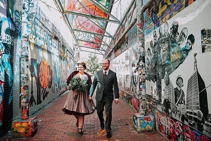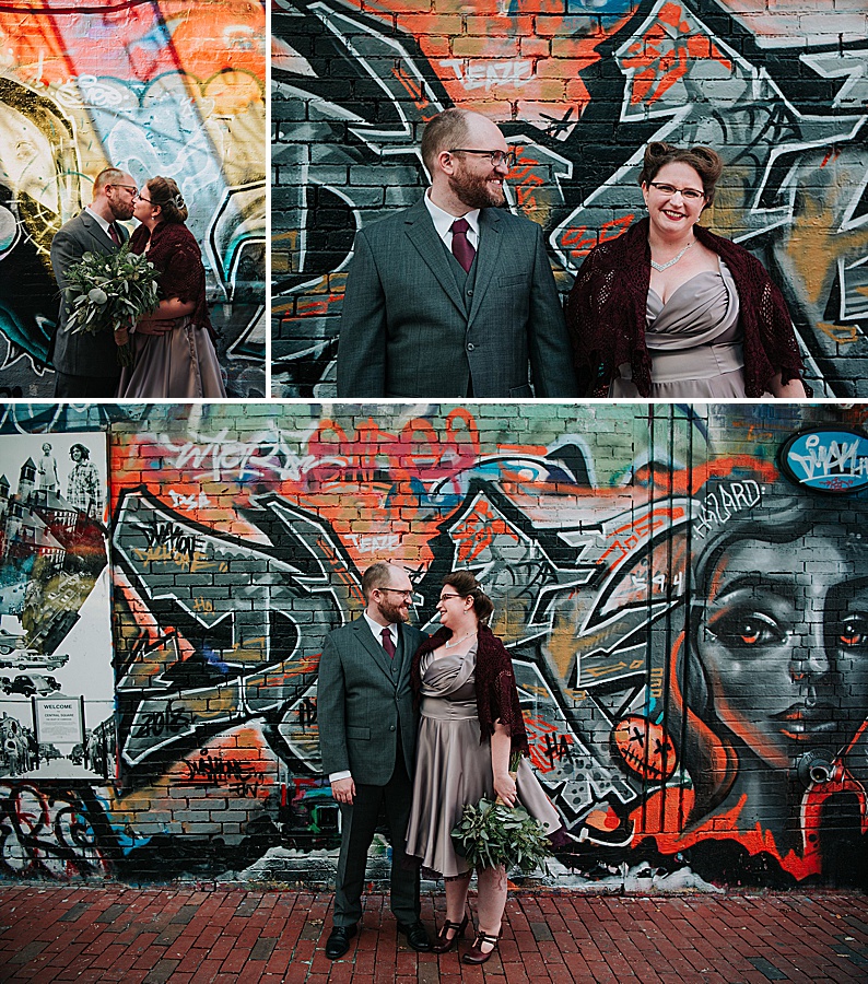 Maggie and Andy were joined by their parents for the ceremony and strolled around town for drinks and photos after. They popped into one of their favorite bars and hit up Graffiti Alley which is my now on must visit list!