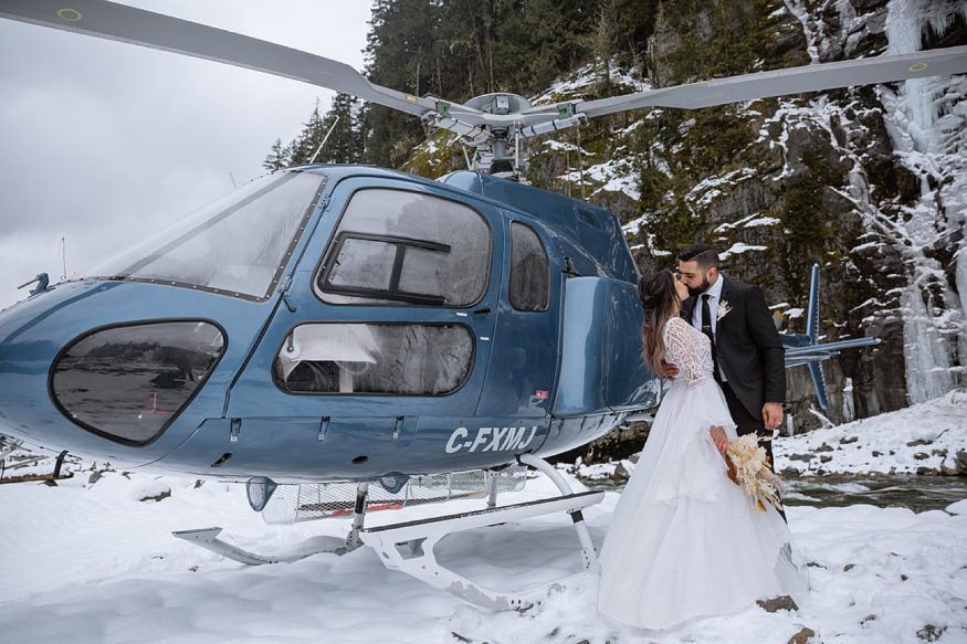 “Due to the pandemic, Caroline and Gurm had to reschedule their wedding four times. Then, they had the idea of having a helicopter elopement!