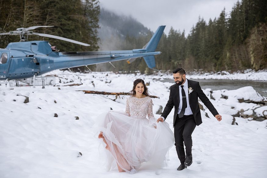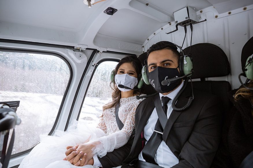 “Due to the pandemic, Caroline and Gurm had to reschedule their wedding four times. Then, they had the idea of having a helicopter elopement!
