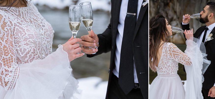 Their intimate ceremony was extremely sweet and was followed by a photo session in this exquisite location. At the end of the session, the couple popped a bottle of champagne to celebrate their marriage.