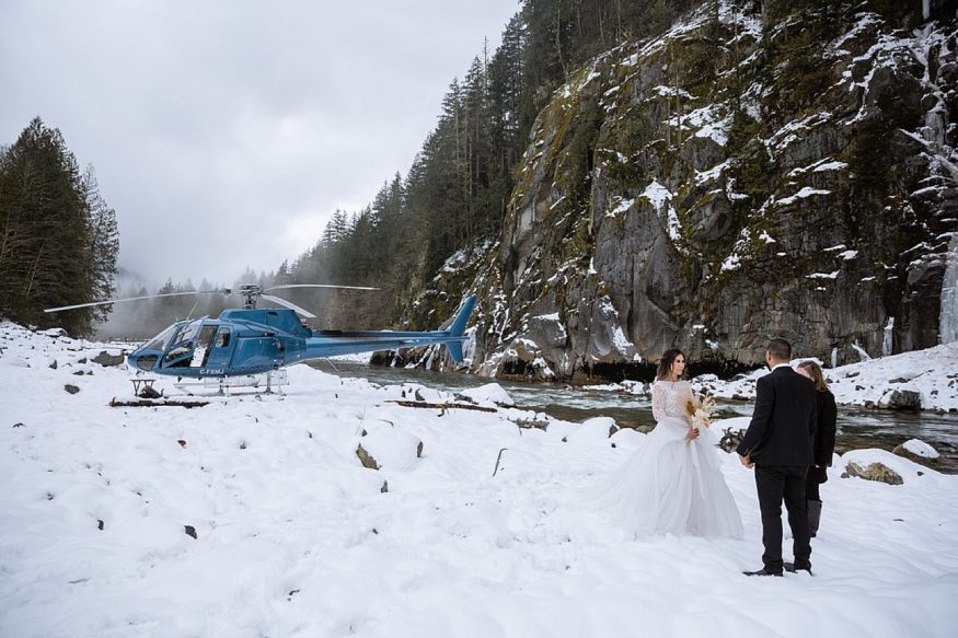 As professional British Columbia adventure elopement photographers, we always have a backup plan for the backup plan. In the worst case scenario that the weather is terrible and a helicopter can’t fly at all, we always have a beautiful location in mind that can be reached by vehicle so the couple can get married no matter what.
