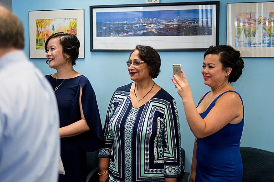 Today we’re headed over to Boston for Linda and Mo’s city hall wedding! They were joined by Linda’s sisters and Mo’s parents as they said I do and strolled around the city for some photos.
