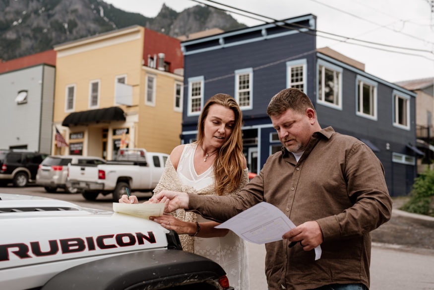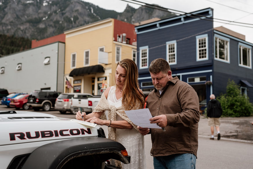 After photos in front of towering 18 ft snow walls, we headed back down the mountain. Paula and Rob signed their marriage license in downtown Ouray right on the hood of the Jeep! The driver from Switzerland of America Jeeps and I were both honored to sign as witnesses.