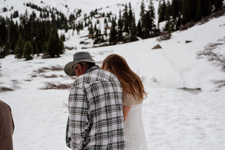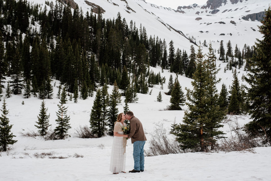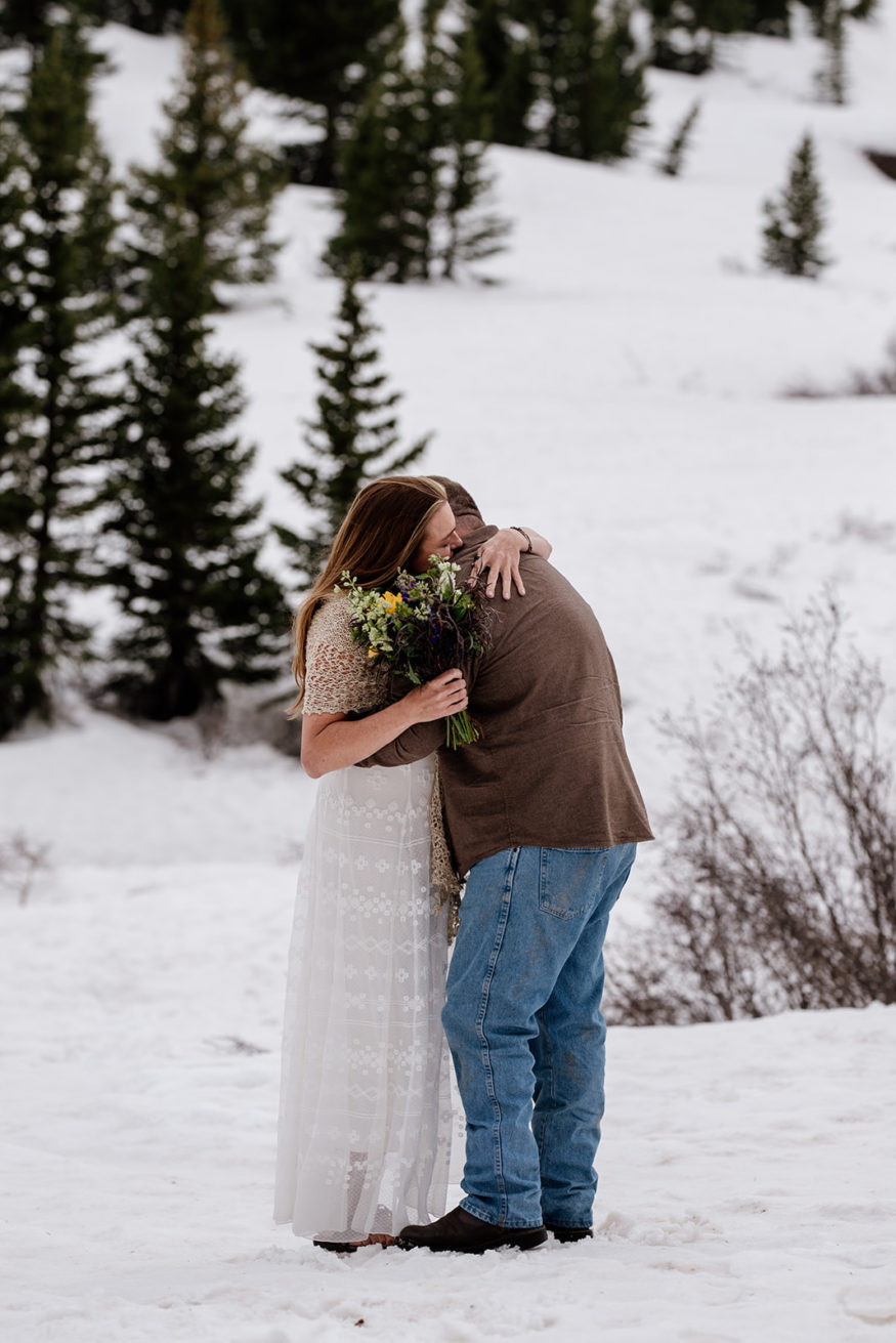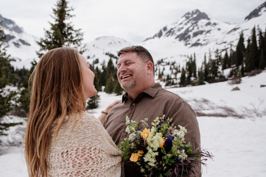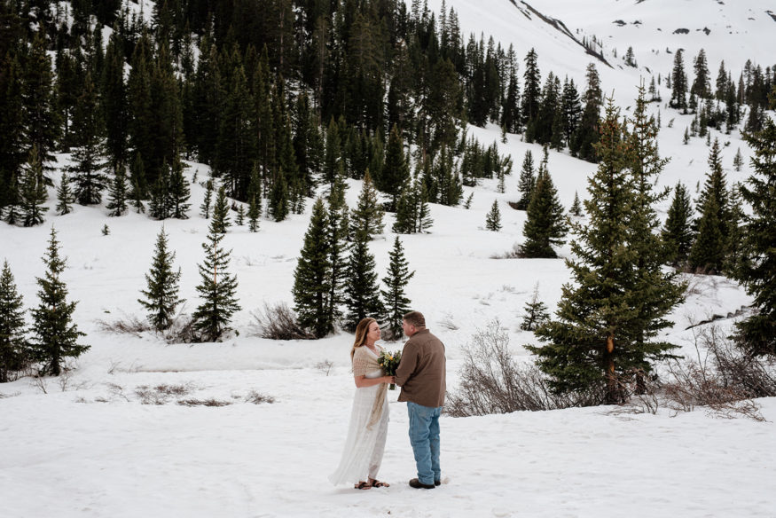 Once at the summit, our Jeep driver walked Paula down the “aisle” towards Rob, and they shared their vows privately surrounded by towering peaks and sweeping snow drifts.