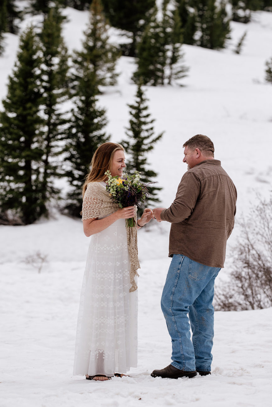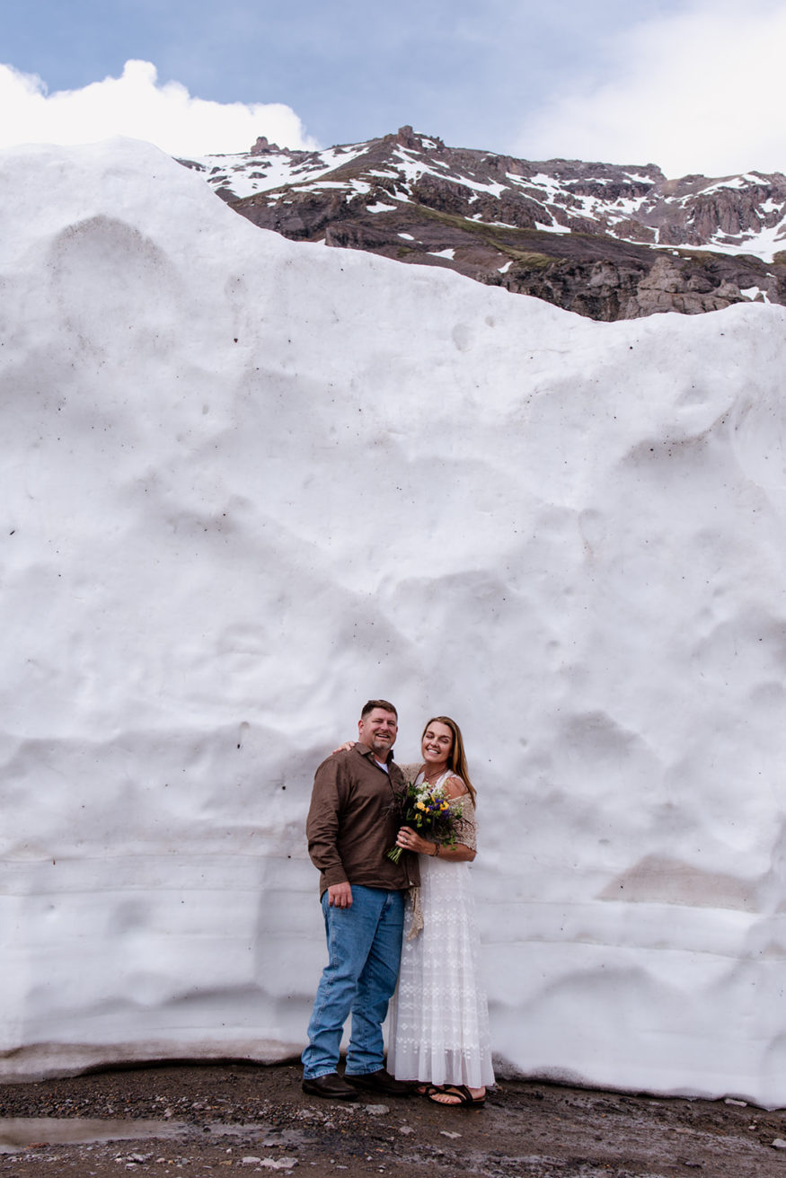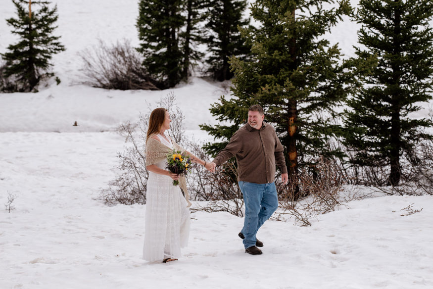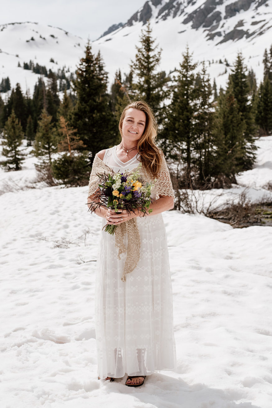 Once at the summit, our Jeep driver walked Paula down the “aisle” towards Rob, and they shared their vows privately surrounded by towering peaks and sweeping snow drifts.