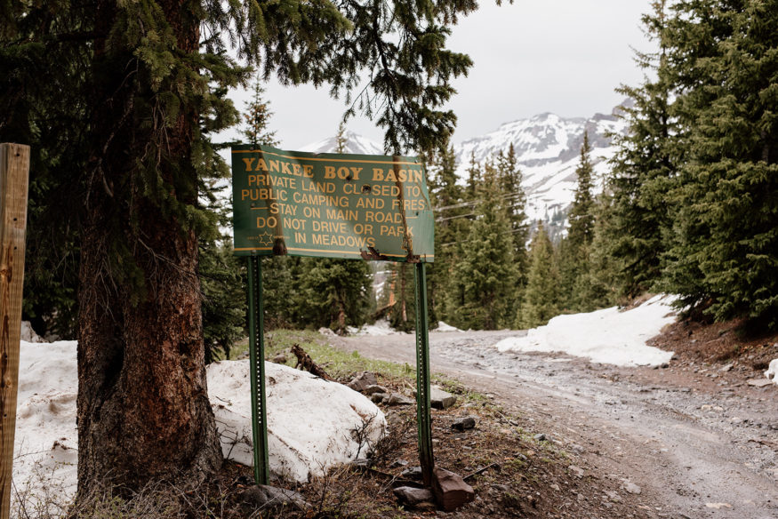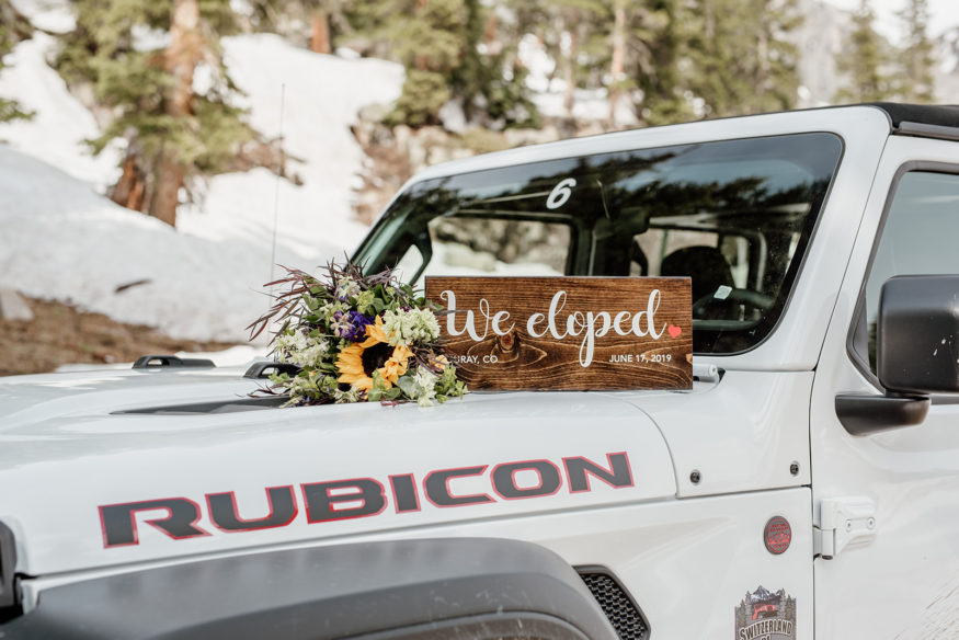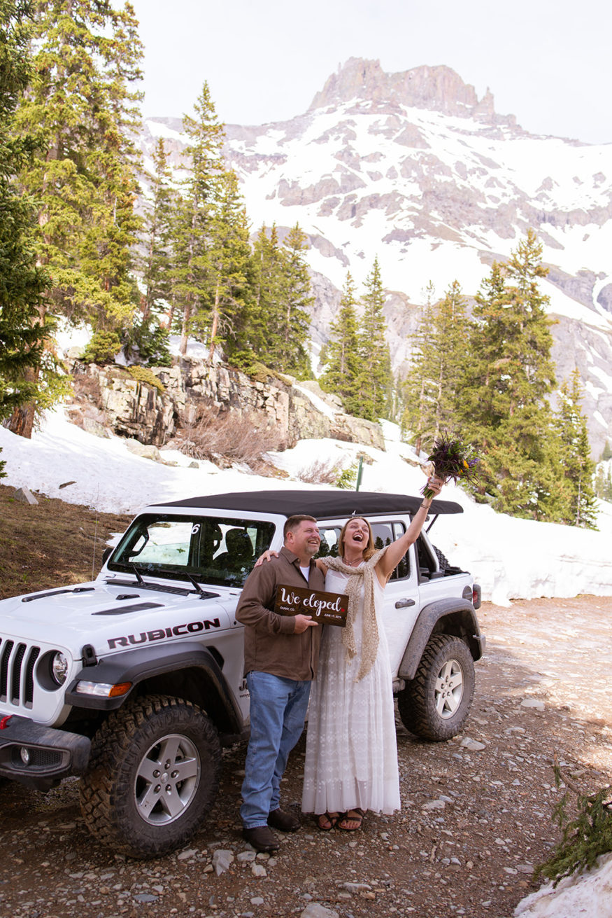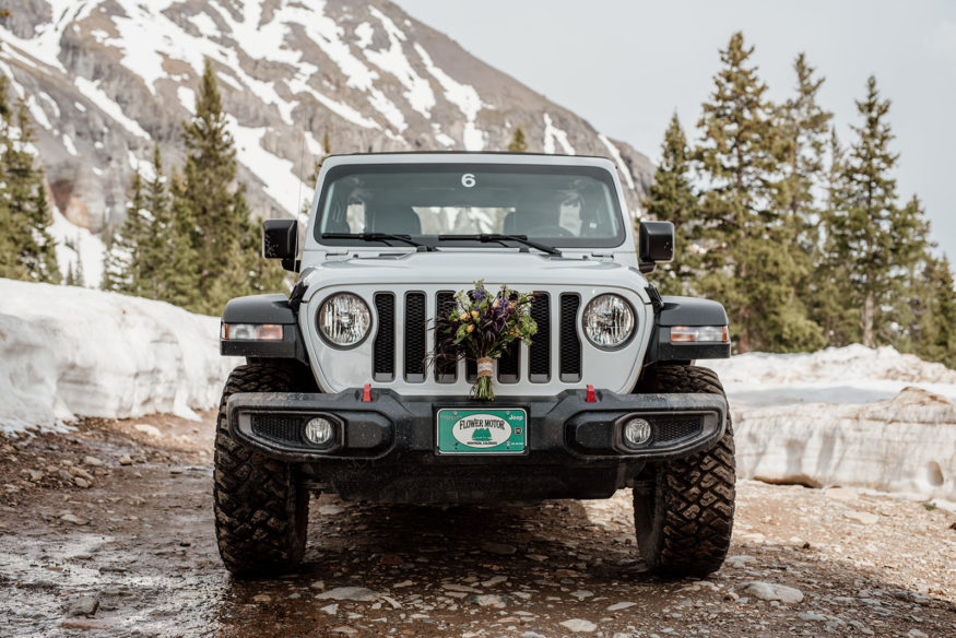 ” Paula had originally planned to elope in Telluride, but with the annual bluegrass festival happening, I knew that it would be hard to get around and more crowded in the popular mountain passes. I suggested Yankee Boy Basin- a stunning and adventurous 4 x 4 Jeep road in the San Juan Mountains, accessible through the nearby town of Ouray.