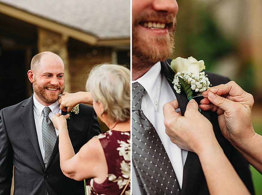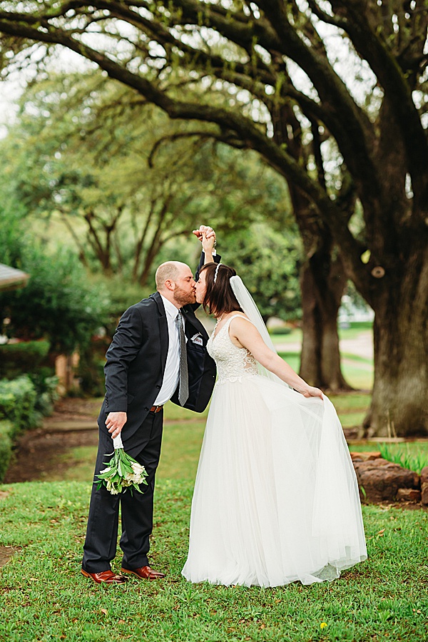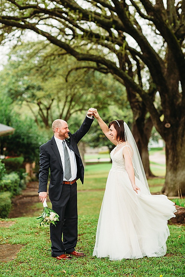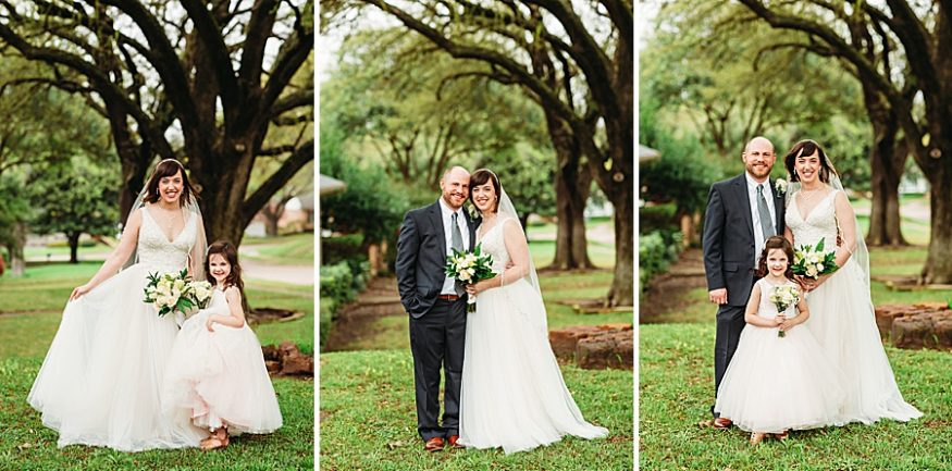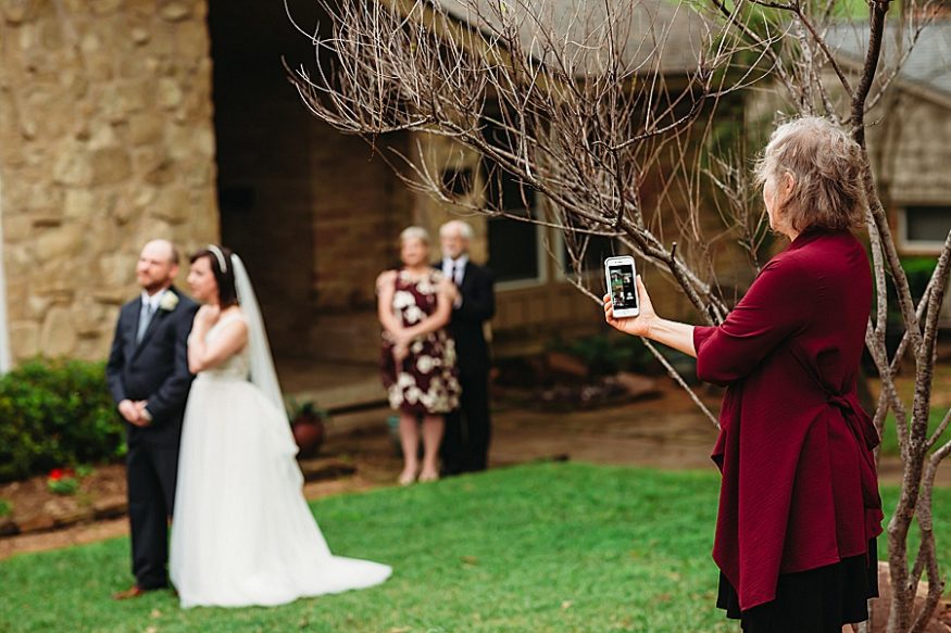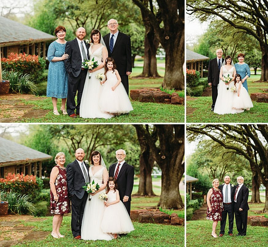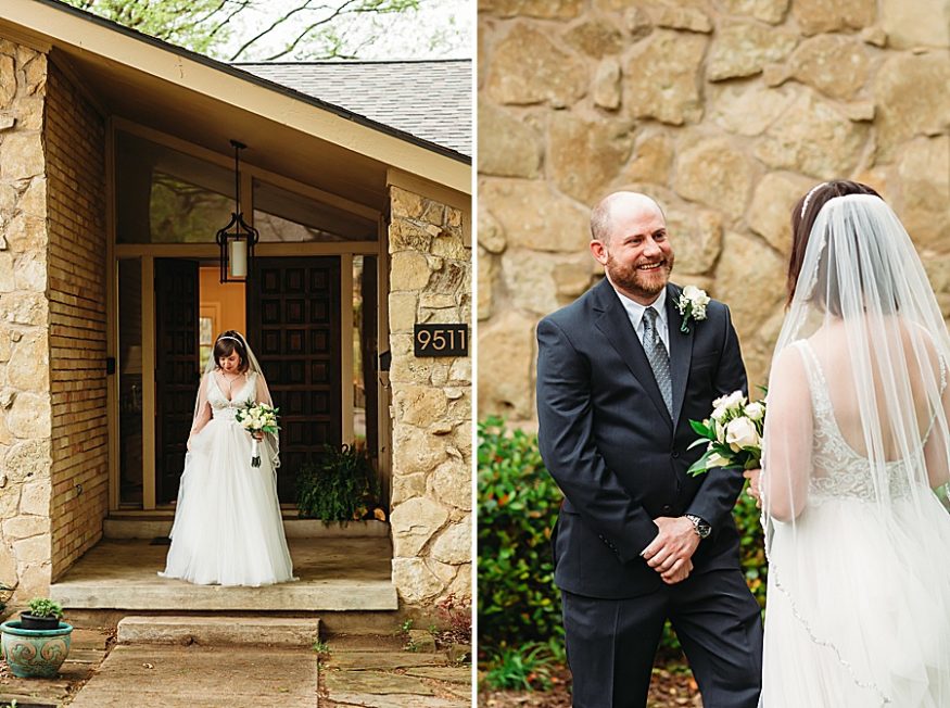 We did not have any intentions of eloping. We had finalized plans to have our ceremony and reception at the Cliff House in Bishops Arts area of Dallas on April 5 with about 100 guests. As things progressed with the pandemic and businesses had to be closed and gatherings continued to be reduced in size it kind of forced our hand. Our back up plan was to have reception at a later date but still be married on April 5, but maybe in the church courtyard with only family. When the shelter in place was ordered we had to change those plans as well. We then decided what was important was us being married and beginning our lives together as husband and wife. We called our pastor up and asked him if he perform the ceremony the next day, Monday, March 23. Deciding at 9pm to have a wedding the next day at 4pm makes you prioritize whats important to have. We quickly called the photographer, and huge blessings she was available to be there. the next morning, Darren worked on getting his suit, music set up, and trellis ready and Darci went to Krogers’s for flowers and assembled her and Claire’s bouquets with a friend. Since our original wedding day was only 2 weeks away, I already had my dress ready.