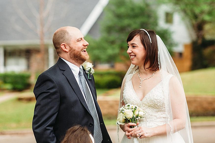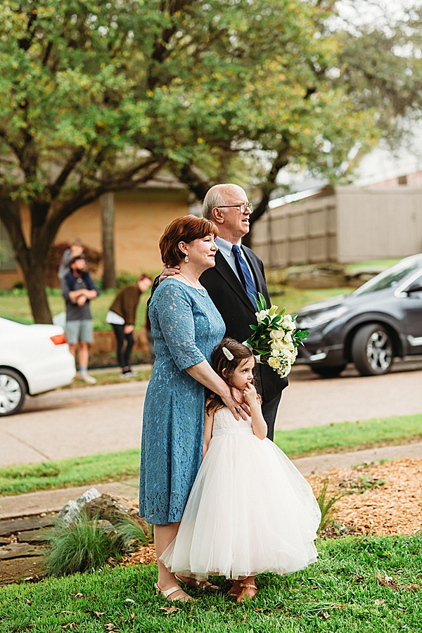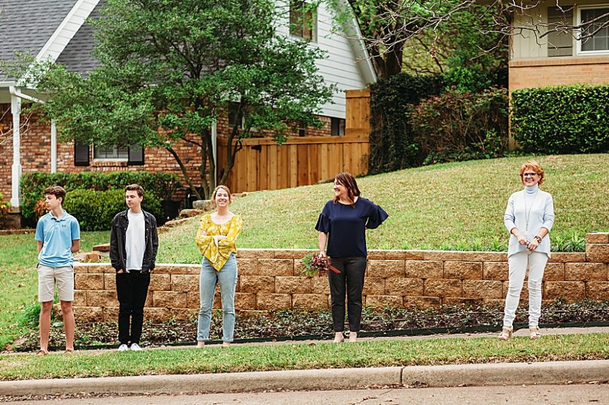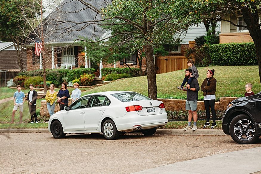 “Darci and Darren had planned to get married on April 5th but were forced to push their wedding date back to September due to all the coronavirus restrictions. Dallas County announced a shelter-in-place order that would go in effect Sunday, March 23rd at midnight. They were ready to get their lives started together so they decided to move forward with the ceremony in their pastors front yard that same day! Their parents, little Claire, the pastor, and I made it exactly 10 people in attendance! With social distancing in place, the neighbors lined up on the sidewalks on the opposite side of the street to cheer them on! It was the sweetest thing I have ever seen and I am so blessed that I was able to capture this special moment from 6 feet away! ”