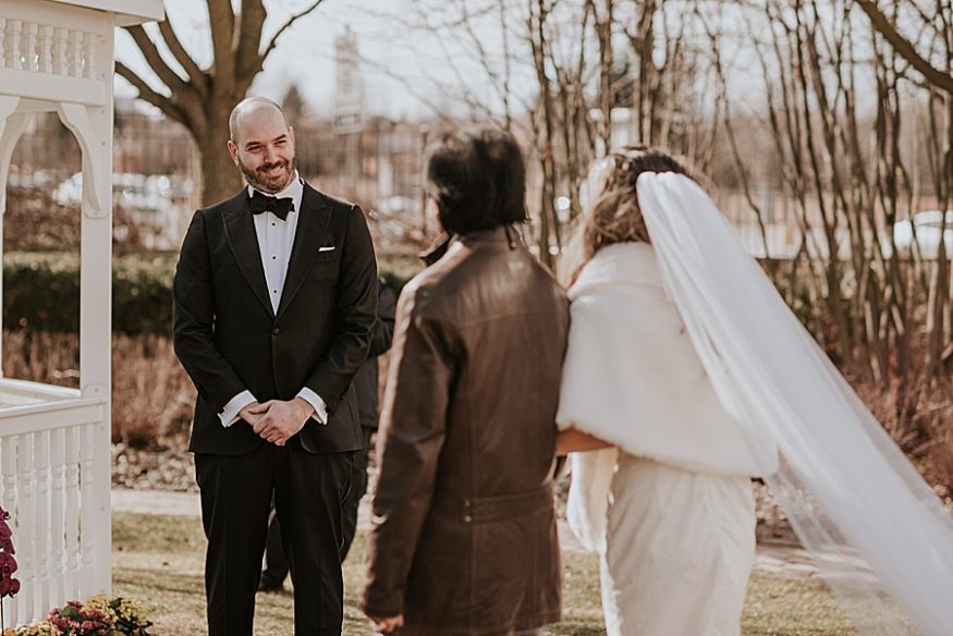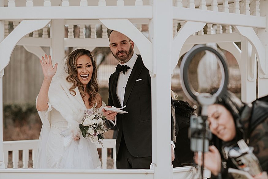 “This Elopement was unique because it was originally planned to be a big wedding. Amongst growing concerns for public safety in the Covid-19 pandemic, Jennifer and Dustin decided to elope instead. The date they chose to be married on, March 21st, held an important place in their heart because it was their original long time anniversary date. It was more important to them to keep that meaningful anniversary date then to have the huge celebration they dreamed of. They had to work with what they had, which was not much considering they only decided to elope one day before their date to be married! The feeling at their elopement was high energy and pure delight as they smiled the entire time and enjoyed basking in each other’s company. It was a beautiful ceremony on a sunny spring day. They tied the knot under a white gazebo in the backyard of their parents Toronto suburb. Their friends and family were invited to tune in and celebrate with them through a video app, which meant so much to the couple. Jennifer and Dustin got to say a huge thank you to all their friends that tuned in. They ended the ceremony with a small cake cutting celebration. Their positivity and grace in the face of drastic change in wedding plans were inspiring and they were excited to share their story.”