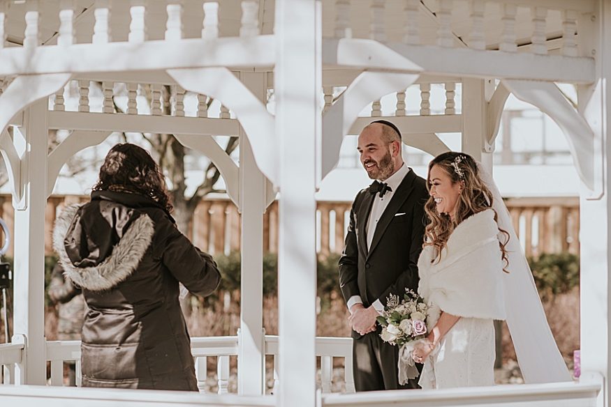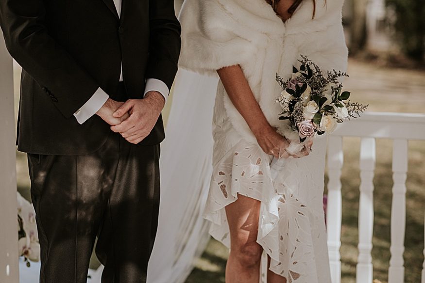 We thought ok, lets call our officiant and see if she’d marry us somewhere, anywhere… she was happy to come and suggested somewhere outside. My mother in law was amazing and sent a picture of her condo out door amenity where they had a gazebo. She asked her property management to see if we can use it. They said they had a cancellation and gave us the ok. We had a venue by the Thursday for the Saturday! We also asked Kat, our photographer if she’d come the Friday. We were so thankful she was more than happy to come.