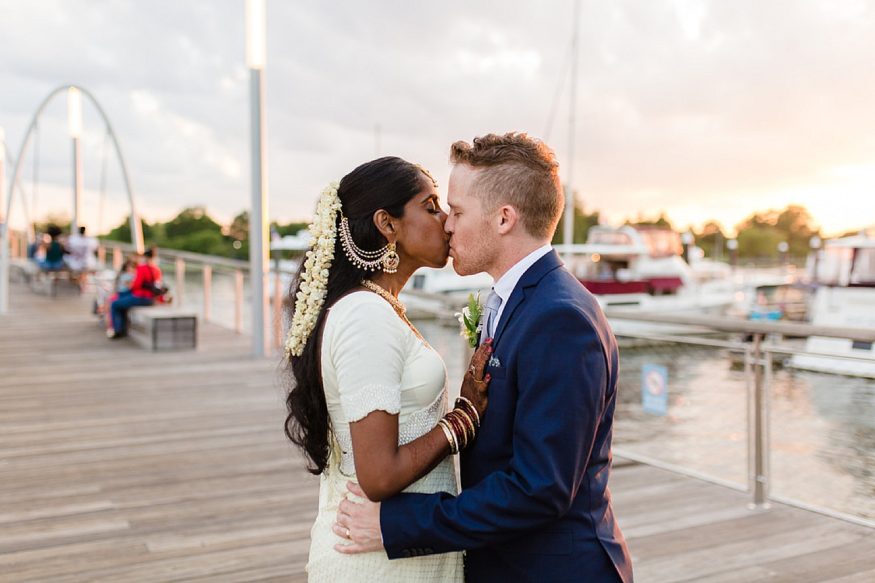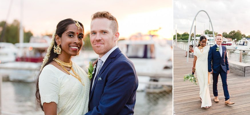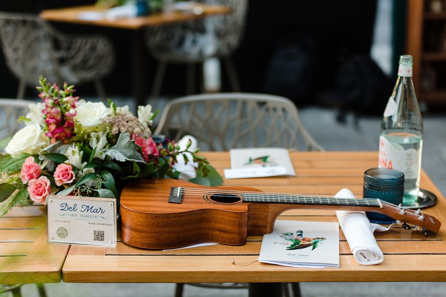 A: It was the most simple wedding, and it ended up being beyond perfect. Our favorite parts were definitely the entrance, with the gentle strum of a ukulele and the sunset stroll down the Wharf we were able to take afterwards.