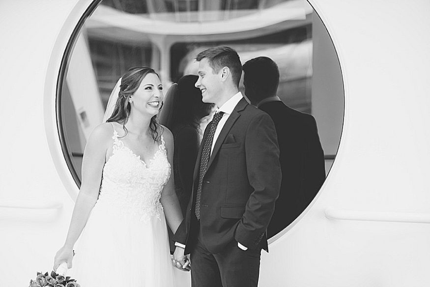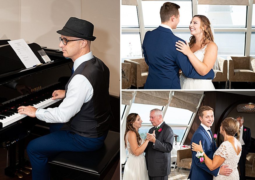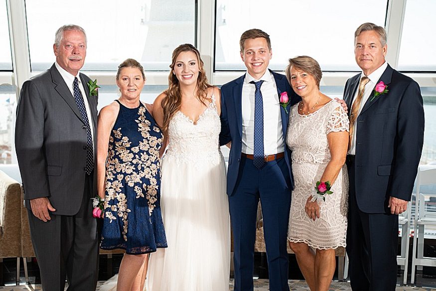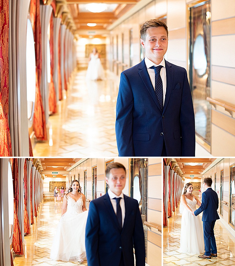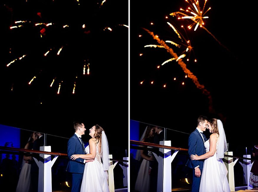 My favorite part of the day was, by far, our personal vows. We opted to only do traditional vows during the ceremony and then take some time after the wedding to read out written vows to each other. After some photos we found a secluded deck and read each other these vows. It was so nice read each other such special words while sailing through the sunset. Stephanie, our photographer, was there to take photos and they ended up being some of our favorite photos from the day! I would totally recommend any couples that be anxious about reading vows to do this on their own after the fact. A close second favorite part was when we went to the club venue on the ship that night in our wedding attire and danced the rest of the night. We got so many congratulatory wishes from random people on the ship, it was so nice of them!