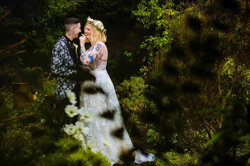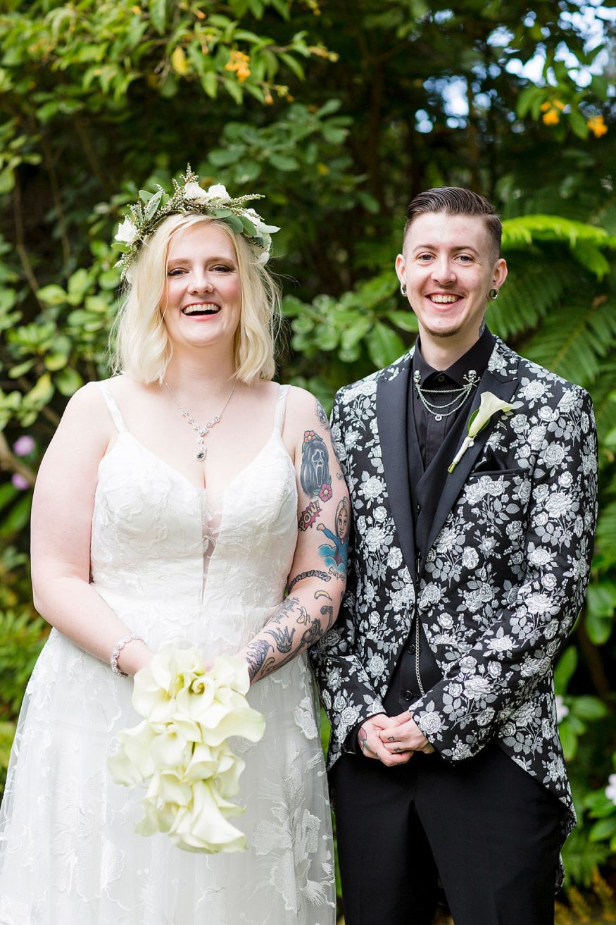 A: I honestly only had to go to one bridal shop and immediately found the dress I loved after only trying on 3 dresses. It was an amazingly magical experience. My husband found a long tail morning coat on a UK website, a year before we got married and then built his suit from that. It was very personalised and very “him”.