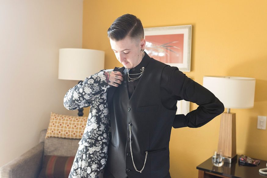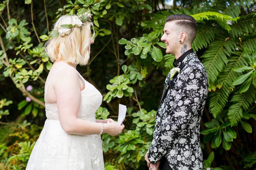 A: We meet when he became my housemate in early 2017. My housemate and I had just had another move out and he became our third. In Feb 2018 when we were in San Francisco, I proposed to him at the Ritz Carlton in Half Moon Bay; he said yes! Just a few months later, he came out as transgender and had always secretly wished he could’ve been the one to propose. So in Feb 2019, at his own birthday celebrations, whilst playing Pictionary with friends – he proposed to me by having me guess wedding on our turn in the game. He then turned around and then turned back with my brand new sparkly engagement ring and re-proposed. It was so magical.