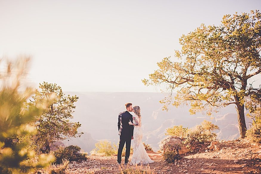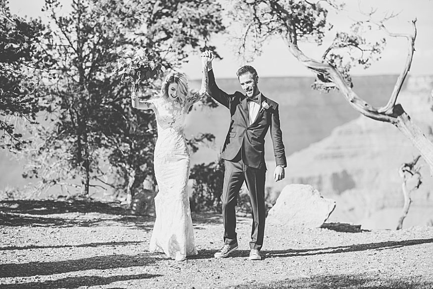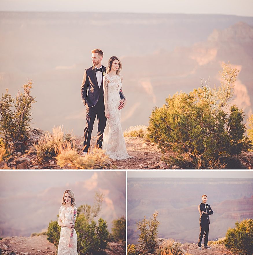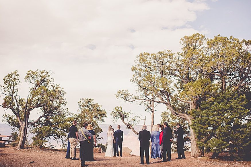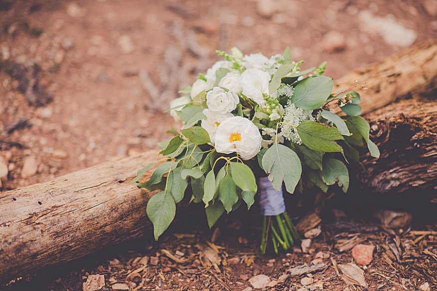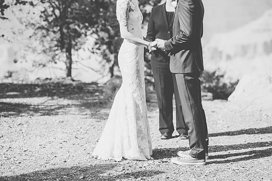 Our inspiration was very minimalistic + rustic from the beginning. We had originally planned a large traditional ceremony and ended up choosing to elope. We kept our original style land theme and made everything a bit smaller! I did have a bouquet, but that was the extent of the florals. We didn’t feel the need for more than that considering the space we chose. Having the Grand Canyon as the backdrop for our ceremony was plenty.