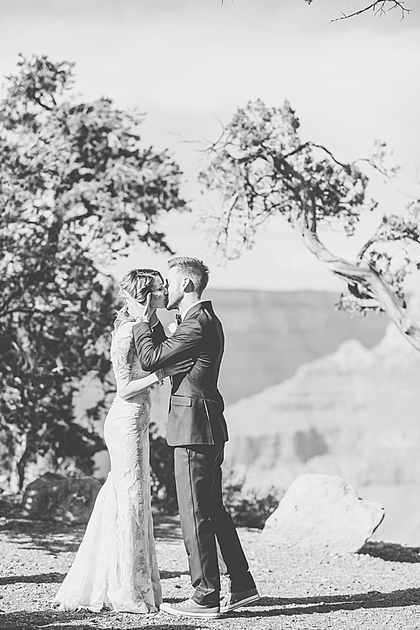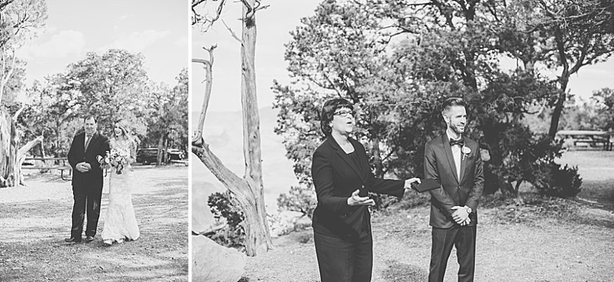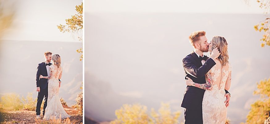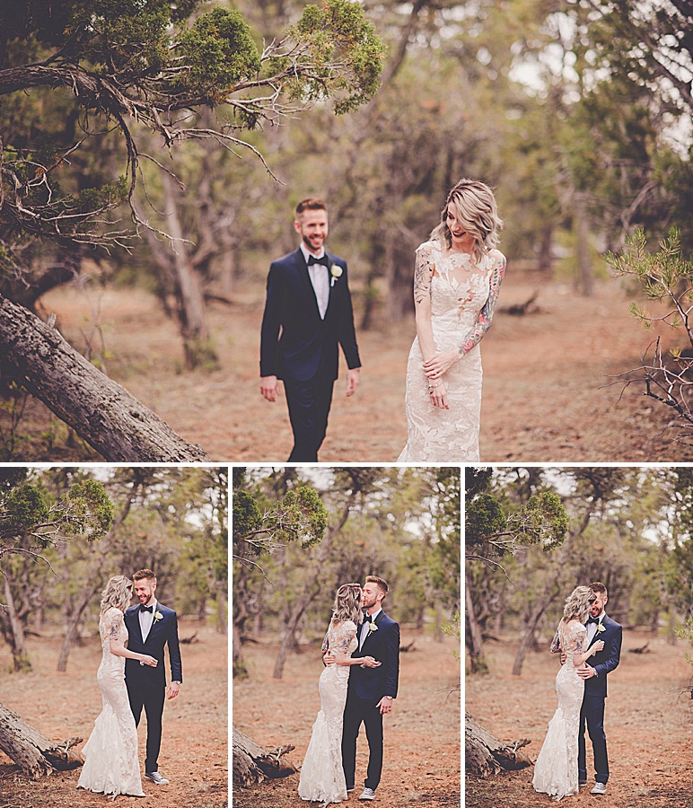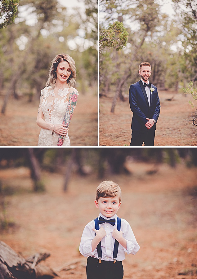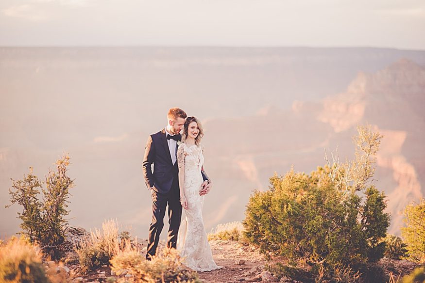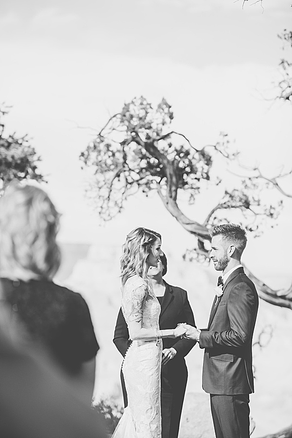 Our inspiration was very minimalistic + rustic from the beginning. We had originally planned a large traditional ceremony and ended up choosing to elope. We kept our original style land theme and made everything a bit smaller! I did have a bouquet, but that was the extent of the florals. We didn’t feel the need for more than that considering the space we chose. Having the Grand Canyon as the backdrop for our ceremony was plenty.