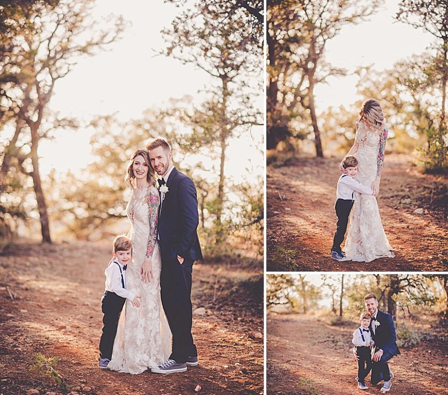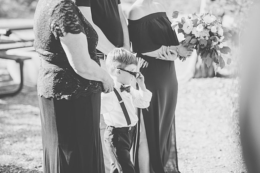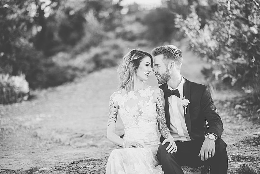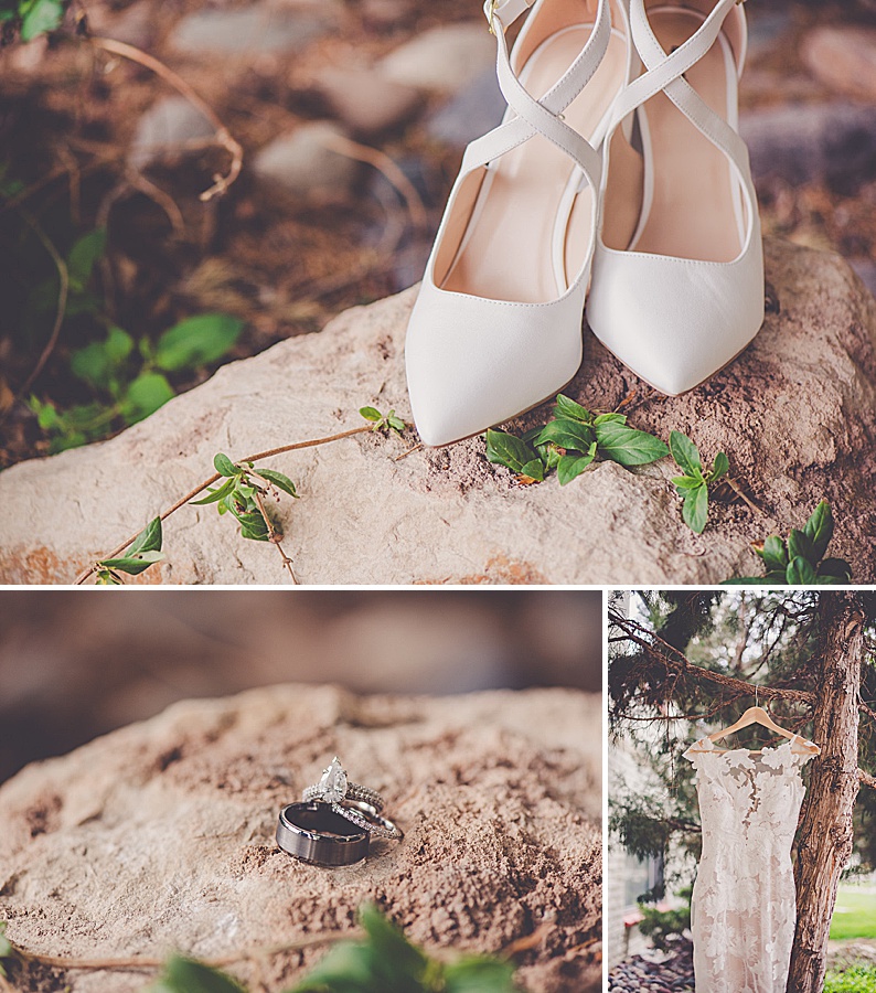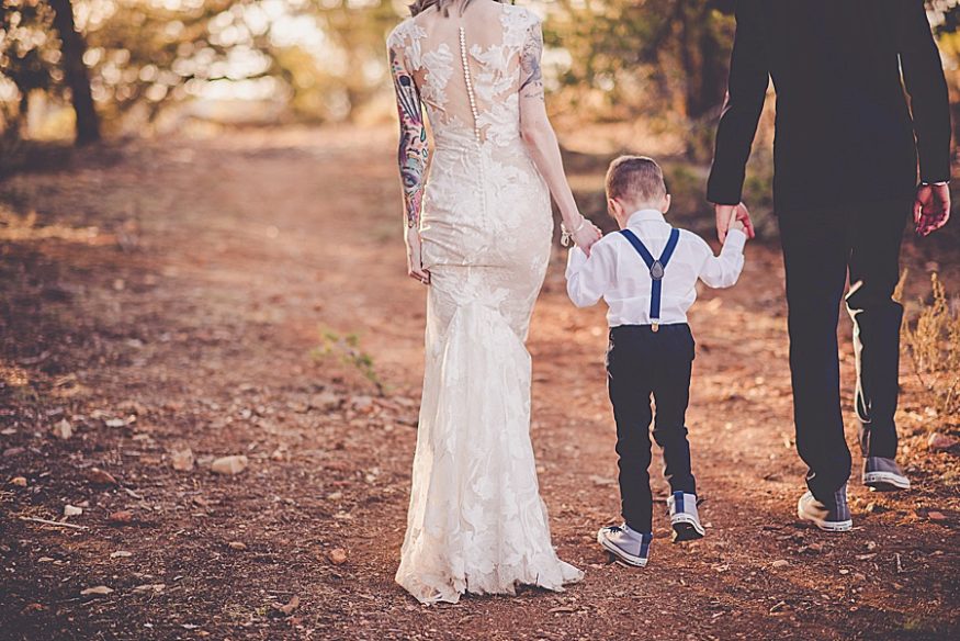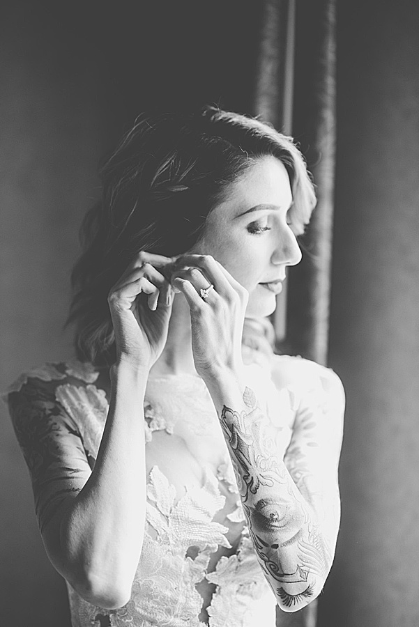 We both wanted something unique. I (Carmen) wanted something that not every bride would wear, and something that fit the style of the wedding. I chose my dress because of the lace design. It looked like it meshed with my tattoos and wasn’t a traditional floral lace. The lace on the dress resembled leaves and I fell in love the minute I tried it on. I had tried other dresses on that I thought I liked but none compared to that one. Joe found his suit at Nordstrom when we were leaving the store. We walked by it and he noticed it. He didn’t know if he should get something that “fancy” but loved it. He ordered a different one online but ended up not liking it. So he decided he should get the one at Nordstrom instead. It fit him perfectly and the color was so unique! It was meant to be!