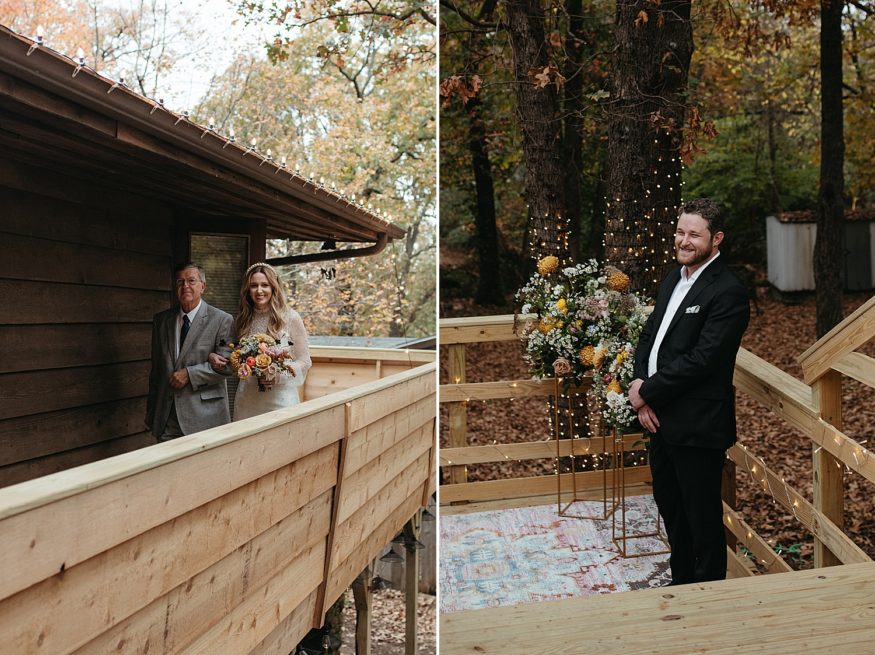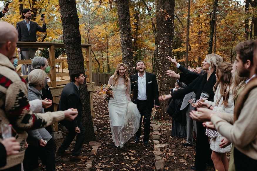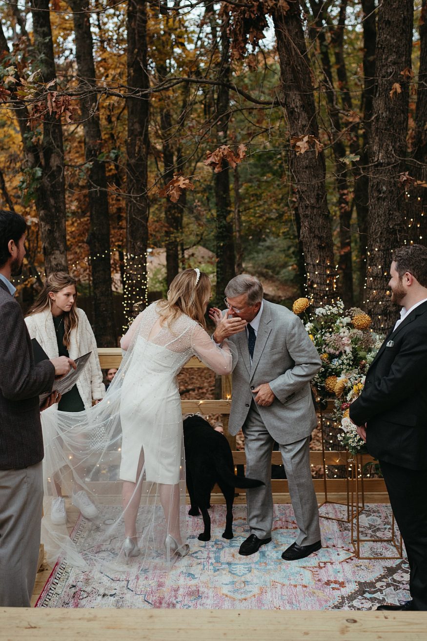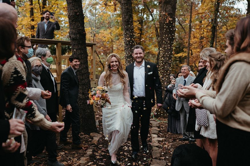 A: Food was a big priority for us. Southern Food Co. were so accommodating and loved the idea of merging a NWA/NOLA menu. We had gumbo (New Orleans) and fried chicken and spaghetti (shout out to Tontitown festival!) and it was delicious! Since trying to keep the numbers down as small as possible Patrick made our playlist. Music that holds a special place in our hearts. He selected the classical piece that I walked out to. We selected New Orleans second line staples “Do Watcha Wanna” and “Hey Baby” as we walked out. Always a party starter!