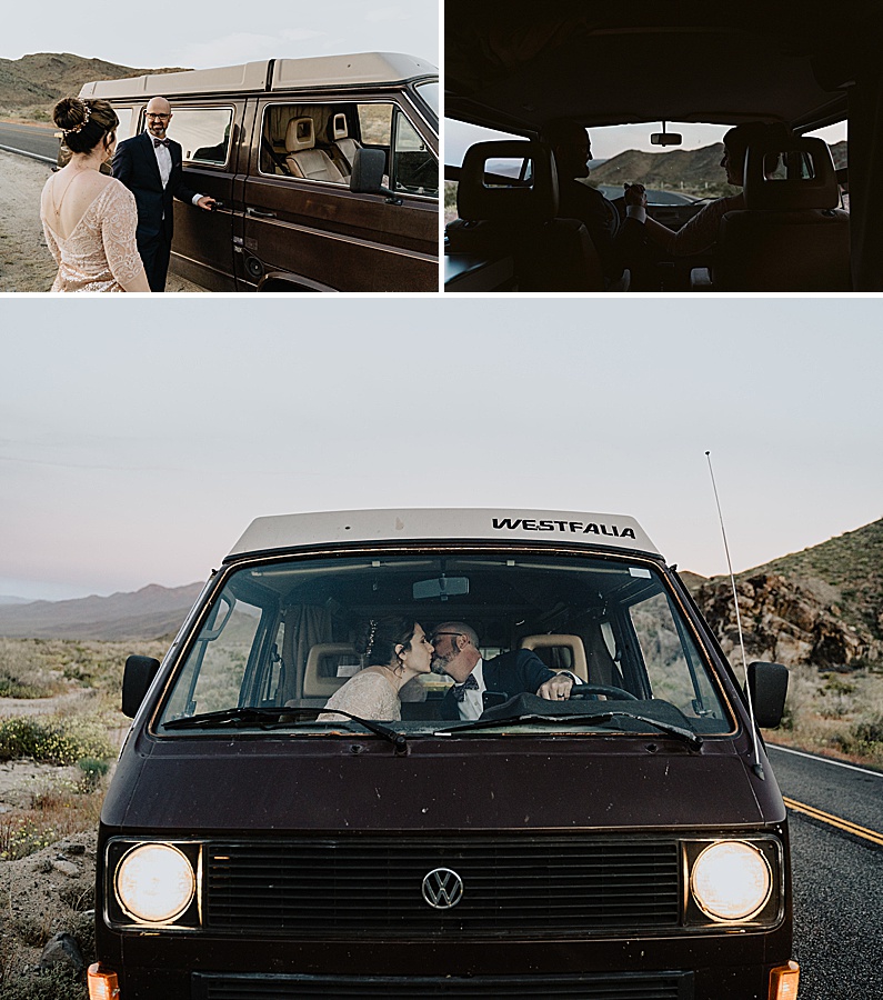 Today we’re heading out to Joshua Tree National Park in California for the intimate wedding of Shelby and Brian. It’s one of their favorite places to go so when it came time to say I do it only made sense to go there ! They were joined by a family and a few close friends as they said I do. Afterwards they roamed aroun din their Volkswagen Westfalia Camper before joining everyone for dinner at a nearby restaurant.