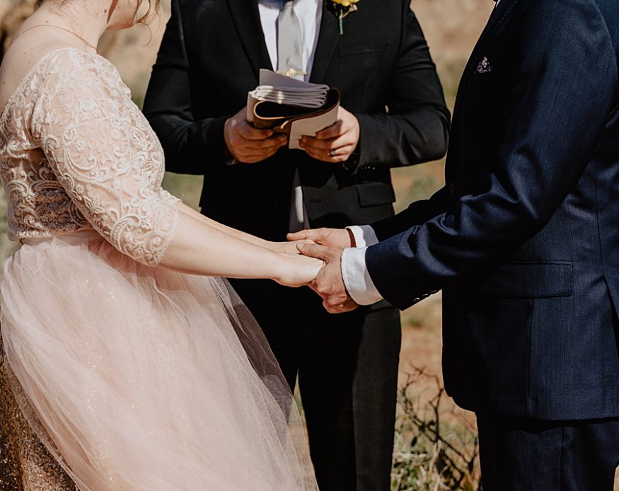 Keep it simple and do it on your terms! Know what’s available in the immediate area, like shopping, gas, cell service. Get your event permit application in early for National Parks. Ask about accessibility for anyone in your party who may have physical limitations. Communication can be difficult in national parks and desolate areas, be sure everyone is on the same page ahead of time and have paper maps. Try to have people ride together to the ceremony site to avoid getting lost and to allow for parking. Bring umbrellas for shade in the desert. We were sunburned after our wedding photos were done.