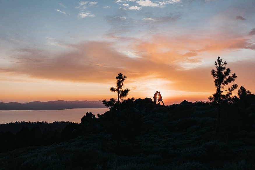 A: Well, given our nontraditional elopement on top of a mountain, there wasn’t much to consider in terms of decor. And that’s exactly why we did it that way. I was never interested in having a big wedding (our pre-COVID plan only originally involved immediate family) and the idea of venues and decor and invoices made my head spin.When we changed our plan to truly elope, there was nothing to think about other than what we were wearing and where we were going. It’s cliche, but it really allowed us to focus on each other and be present in the moment, not fussing over external details. Our “decor” wound up being Lake Tahoe views, alpine forests, mountain vistas, and a pink and orange sunset.