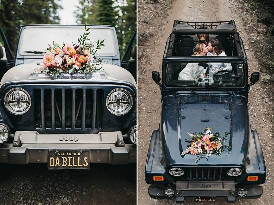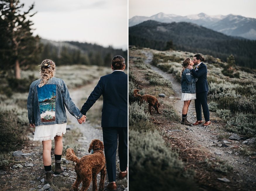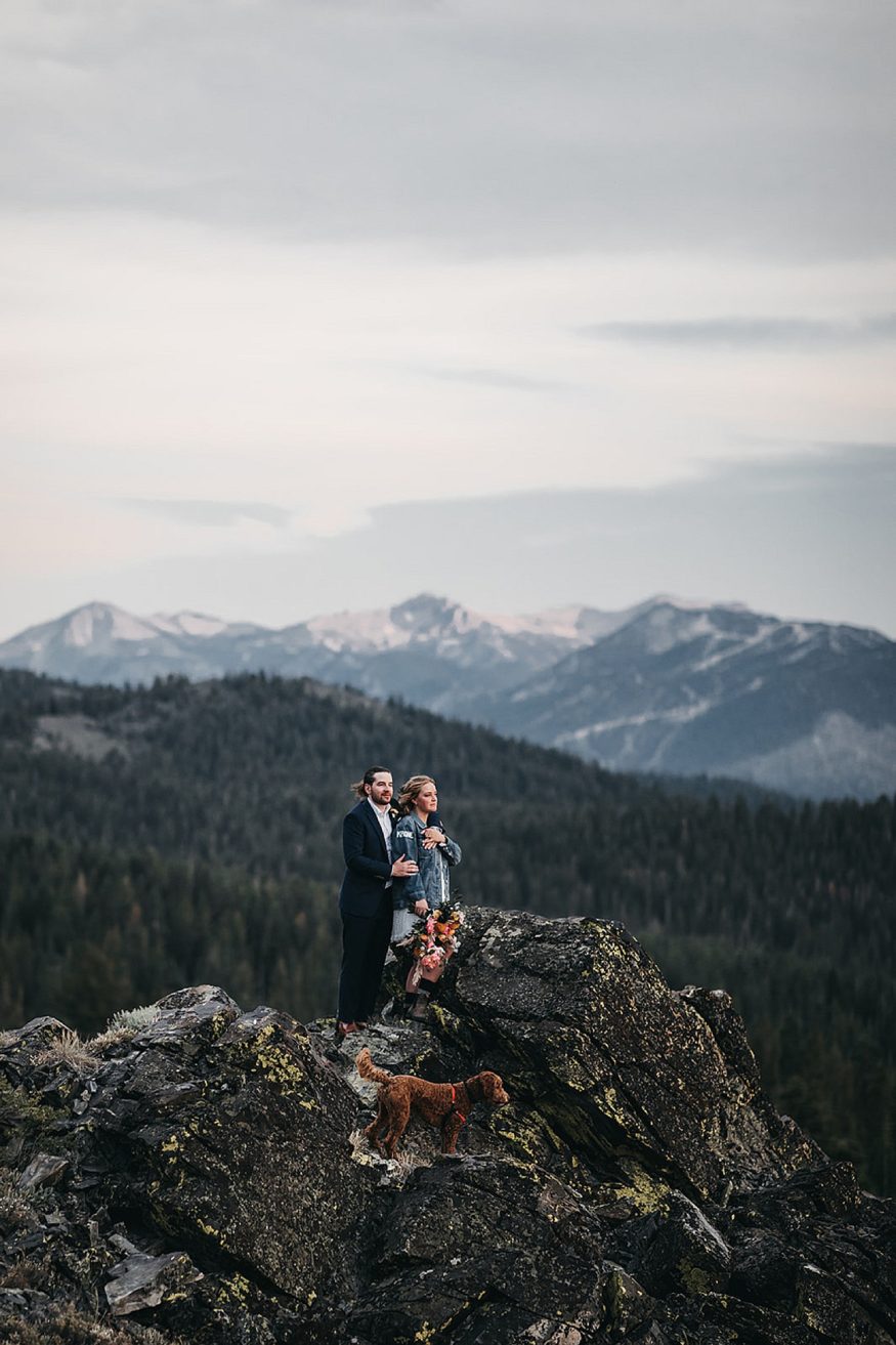 Liz and Matt were already planning a tiny wedding when Covid hit. But with families all over the place and travel being a no-go they decided the best thing for them would be to elope. So they proceeded with their new plan, hopped in the jeep with their dog Louie and said I do in the mountains.