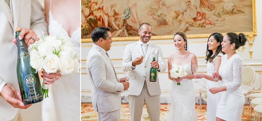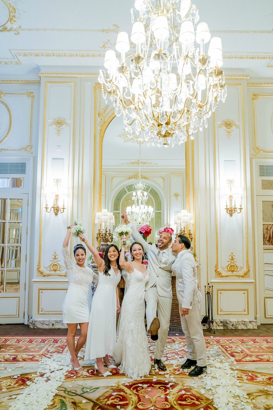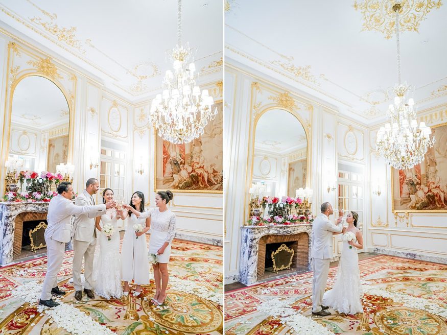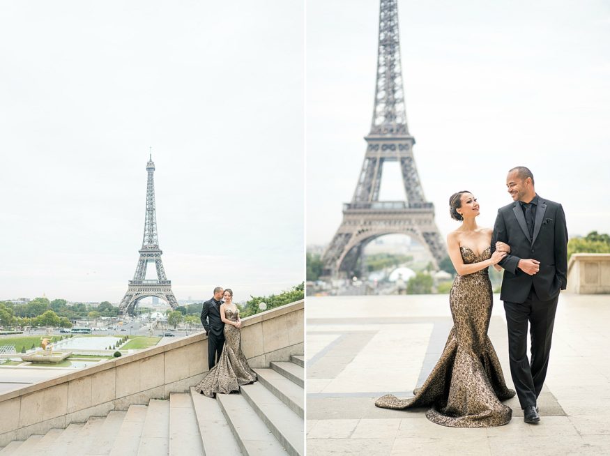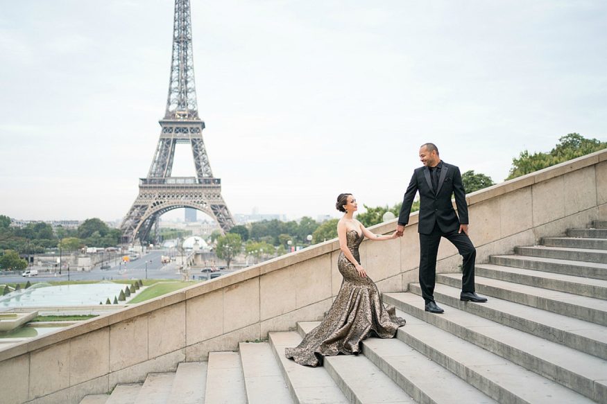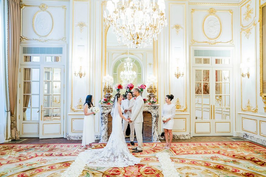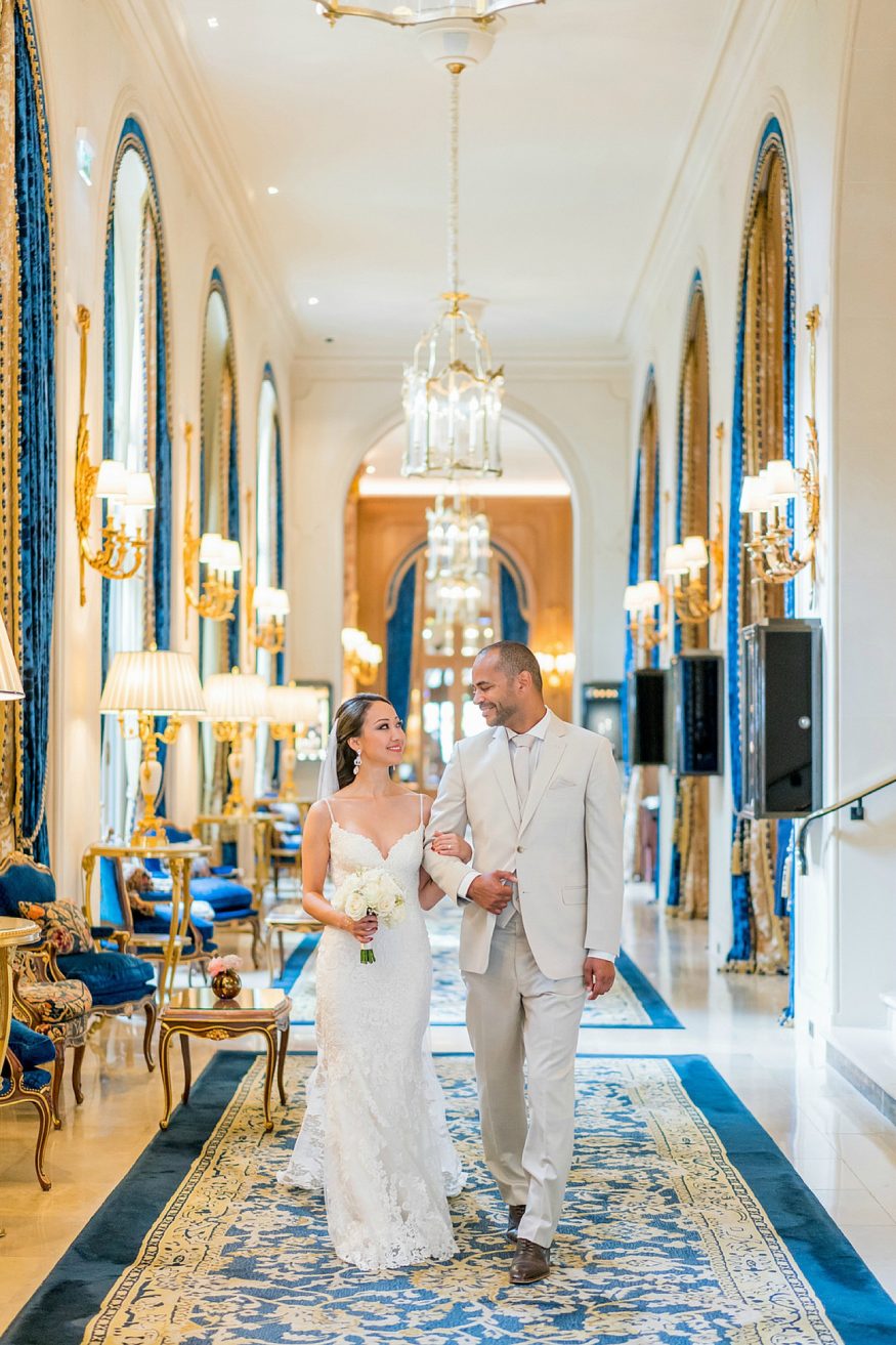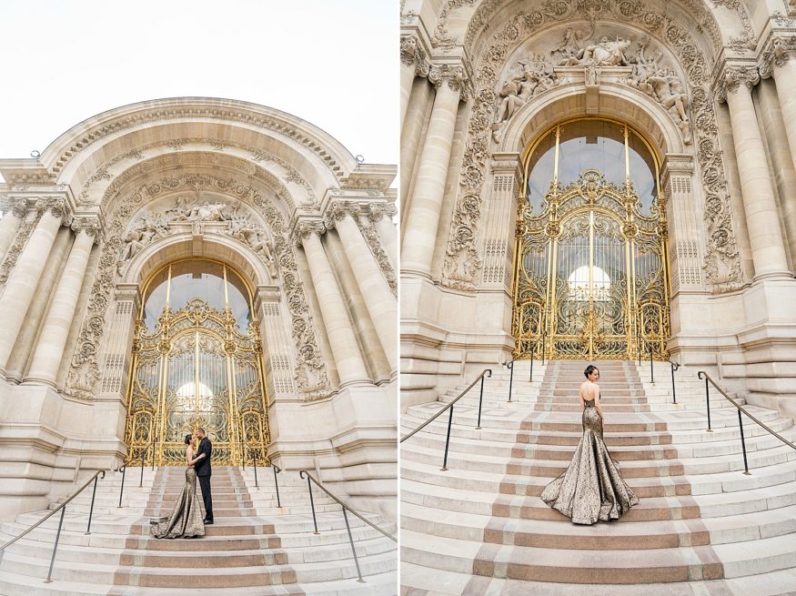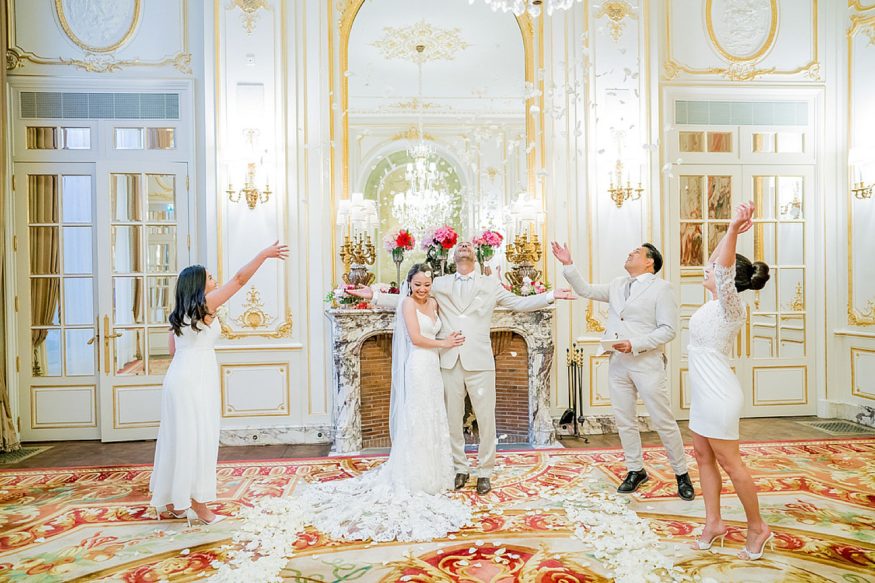 We wanted our wedding to be very glamorous and romantic! And there’s no city more glam and romantic than Paris. I’ve been in love with Paris (and the French culture in general) since I was a teenager (after I watched the movie Amelie), and always felt that if I got married, Paris would be my dream location. After we researched many many locations, we decided the Ritz was the most beautiful hotel and would be perfect for our special day. We also looked through 6-7 photographers’ portfolios and thought Pierre’s portfolio was the most fitting for our vision: artisically airy, soft, feminine, ROMANTIC. And we loved how Pierre captured landscape, whereas many other photographers would focus in on the couple. We didn’t fly to Paris to get our faces photographed — we could do that back home for much less money. ???? We wanted to capture the beautiful landscape of Paris (with Nate and I in it) and Pierre did that perfectly!