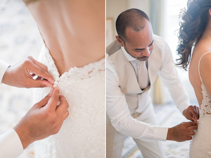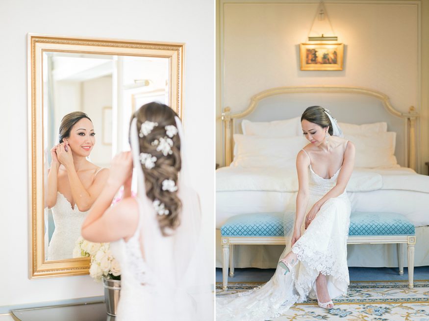 After picking Pierre as our photographer, we looked through all your Instagram, Facebook, and website photos and picked our favourite locations from your portfolio. Once the locations were picked, I started looking at dresses that would match the backgrounds and also the Ritz and decided 3 dresses would work. Once my dresses were picked, we went and picked Nate’s suits (his outfits were much easier to find than mine!). The bouquet was done by Yuko who you referred and she was soooo lovely to work with. She originally wanted me to have a bigger bouquet, but I wanted something simple that would not cover my dress. She did such a wonderful job with the flowers in the ceremony room and the aisle. I couldn’t be happier with her so thank you for referring her to me 🙂 My veil and earrings were then chosen to match my dresses and I found my makeup/hair artist on Instagram. I had a morning look and ceremony look 🙂