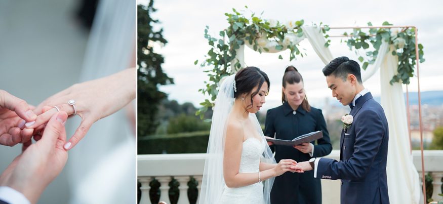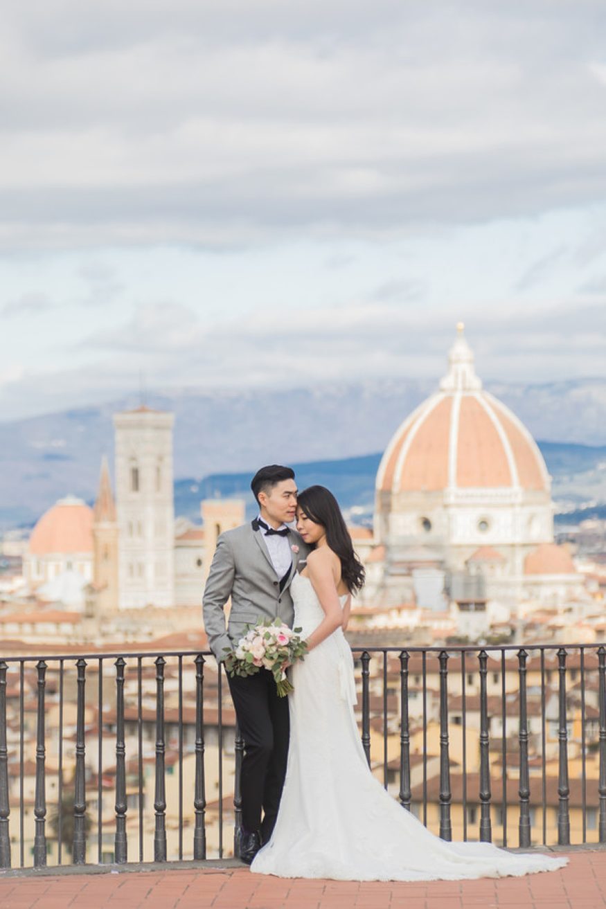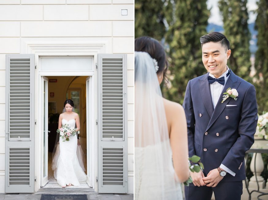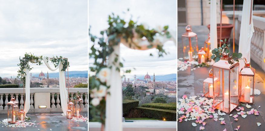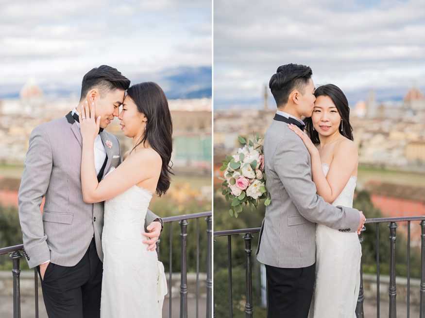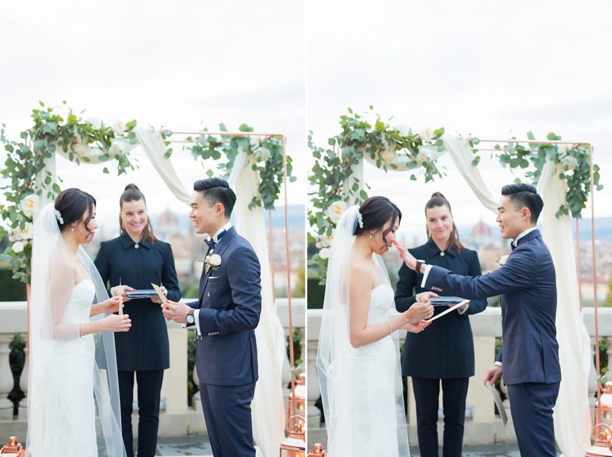 We both love traveling and always wanted to get married in a beautiful setting. It was both of our forever dreams to have an outdoor wedding and our venue being top of the hill overlooking Florence was just perfect. Although our wedding day started off rainy, it miraculously cleared up just in time allowing us to be married outside at sunset. It was magical!