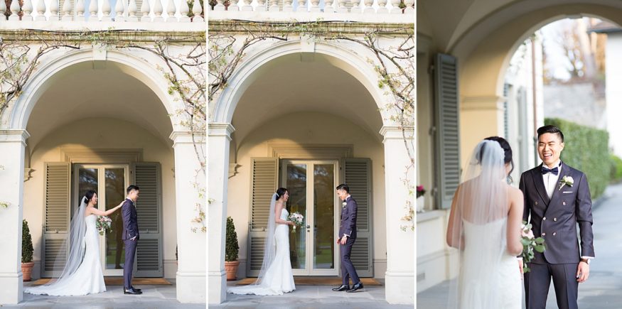 Our first-look was very special for us. My husband had never seen the dress although it was hanging in our home for 5+ months before our wedding day. Sparing him with any details of my dress, hair-do, etc. throughout our planning, it was really fun to finally see each other just before we said our I-do’s. Our photographer, Pierre, captured the lovely moment so perfectly, we now have beautiful pictures to reminisce our special moment of our wedding day.