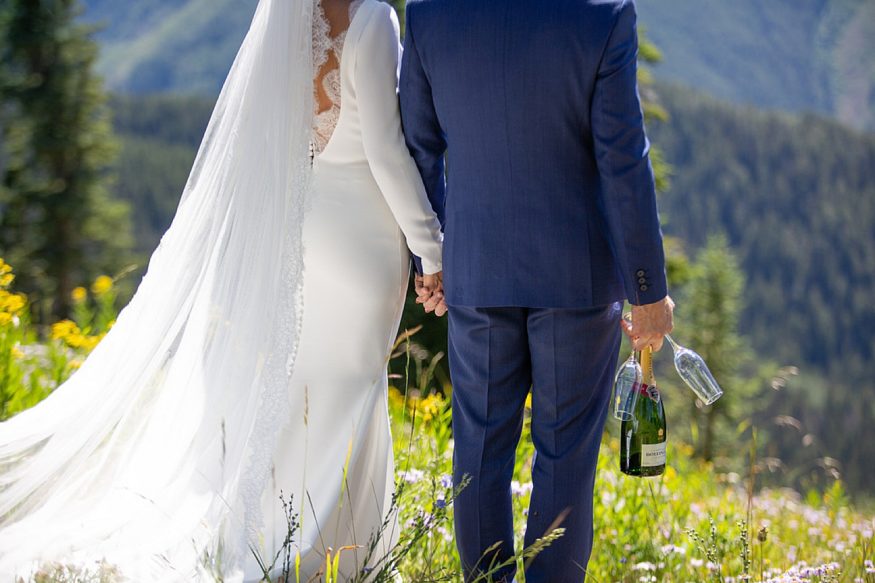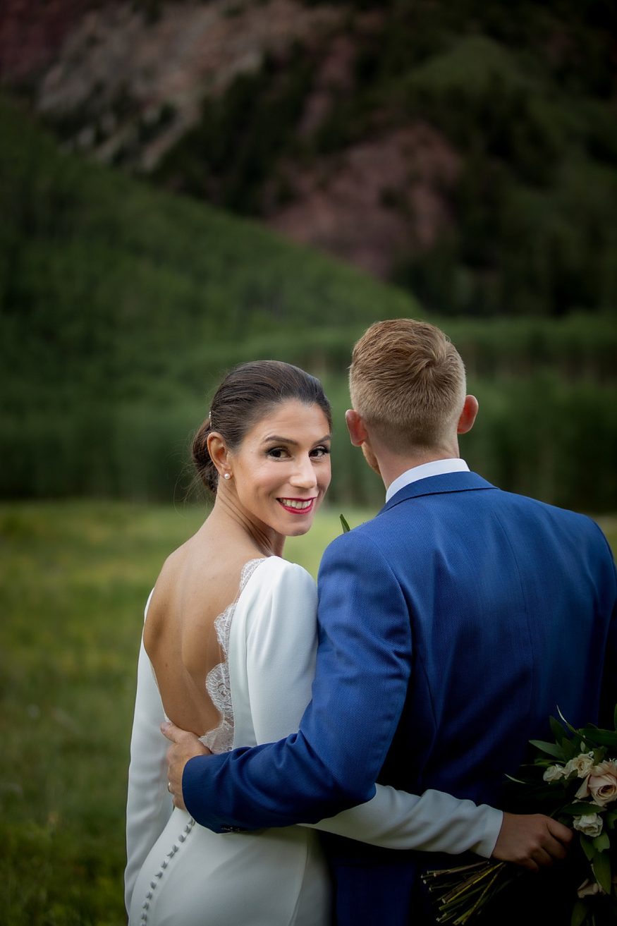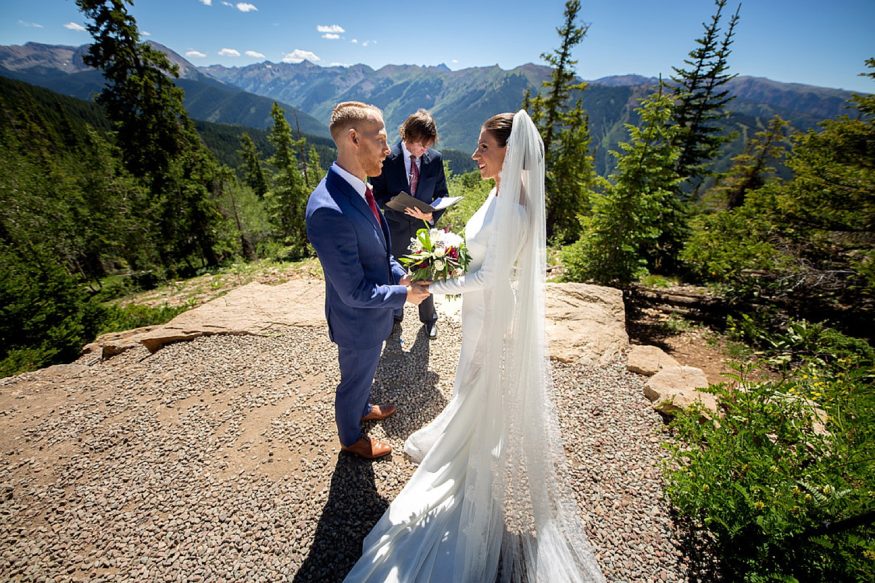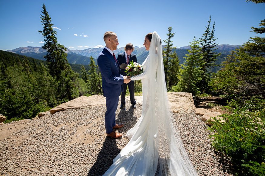 Their original plans were altered by Covid, but they embraced it and decided to fly back to Denver where their story began and married in the Mountains of Aspen.