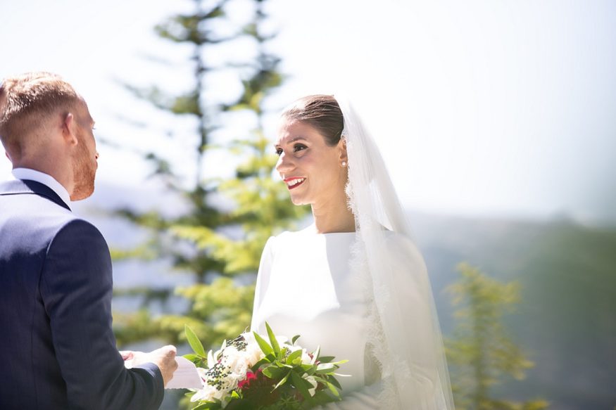 A: Finally seeing each other on the day. We had been through so many ups and downs throughout this entire wedding planning process and really had a rough month leading up to our elopement. We had been so stressed out about both the wedding and elopement that finally holding each other’s hands and saying our vows and doing this our way was the best feeling in the world. Literally in that moment we were everything we needed to be for each other.