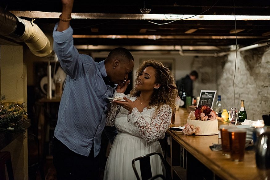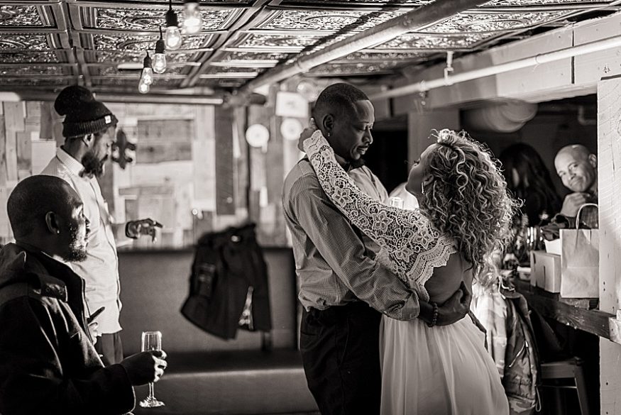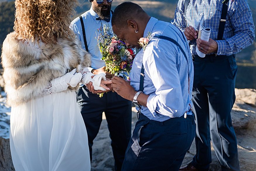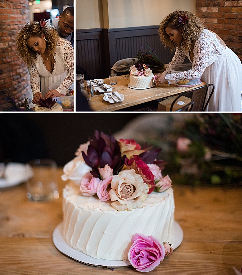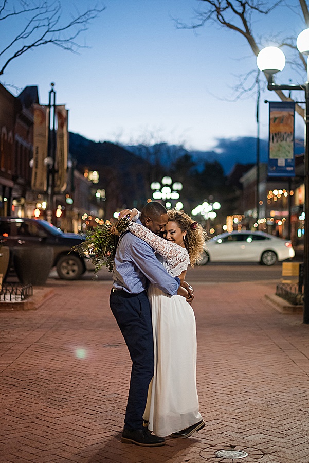 Our favorite part of the day was arriving to the snow covered mountain and the beautiful bright sunny day. We had people at the park stop and watch our ceremony all the tears in their eyes. That truly made us feel overwhelmed with joy. After the ceremony we wanted to just hang out and do something fun and simple with our friends. The day before our ceremony we went down to pearl street to shop around and decided to have lunch at the French quarters. The owner of the restaurant was absolutely wonderful she offered us to come back after our wedding ceremony and celebrate with them. So we did just that we had an amazing time. The atmosphere was absolutely perfect. I made my own wedding cake topping. And assembled it right there at the restaurant. We loved everything about that night.