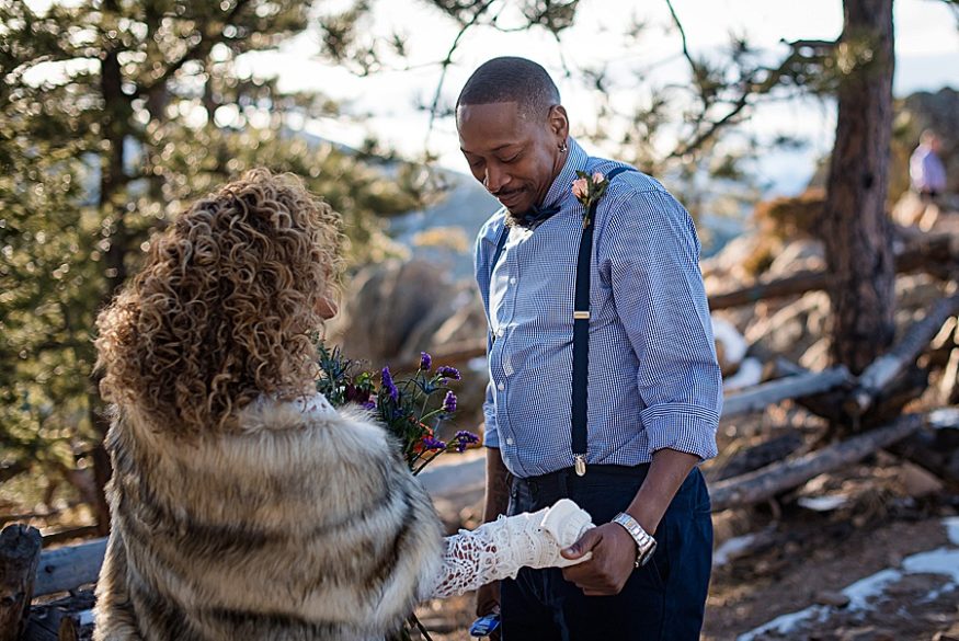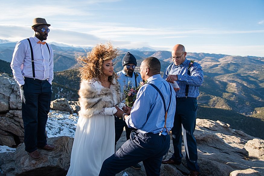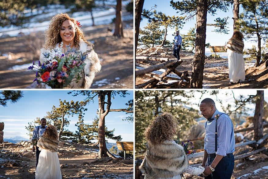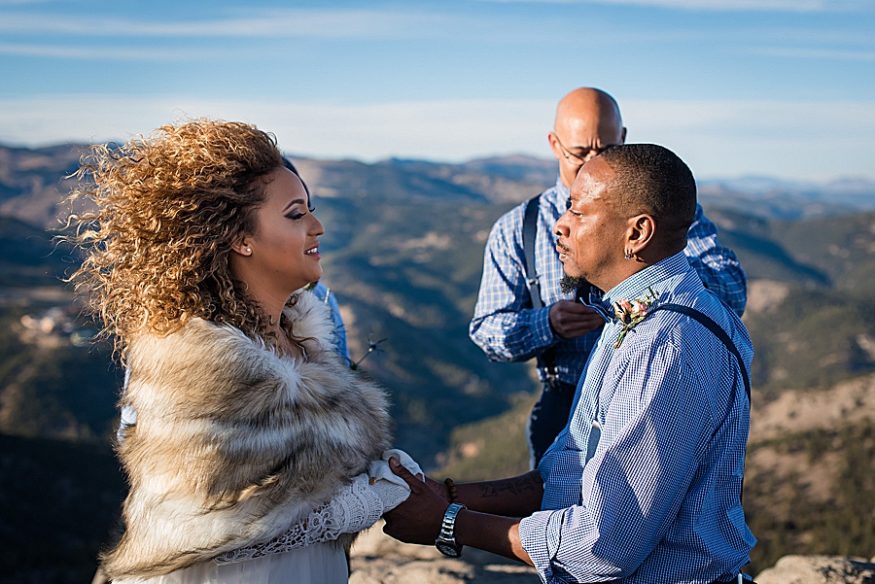 Rohan and I are both from Florida. So everything we did was over the phone and through Messages. This was a little challenging because we couldn’t really scope out any areas personally prior to us arriving in Colorado. We looked at different locations through Pinterest to try to get an idea of what I wanted the location to be. We looked at a couple locations once we arrived in Denver. And that took us over to the flat iron Mountain up to Flagstaff mountain and looked at a couple different outlooks. The one that we decided on absolutely took our breath away. It was like we were on top of the world. Everything about that place just felt right it was absolutely beautiful.