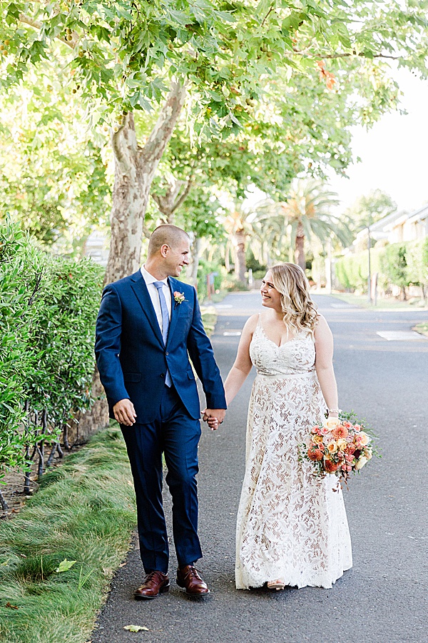A: I knew I didn’t want a traditional wedding dress. Especially given our choice of wedding. I went a bit bohemian with lace and camel undertones. John looks amazing in blue so my only demand was please wear a blue suit! He didn’t disappoint 🙂