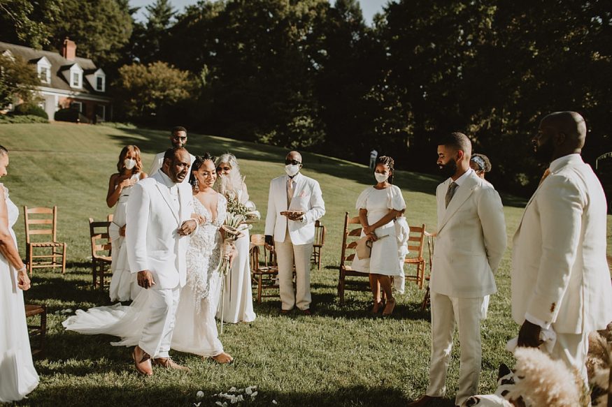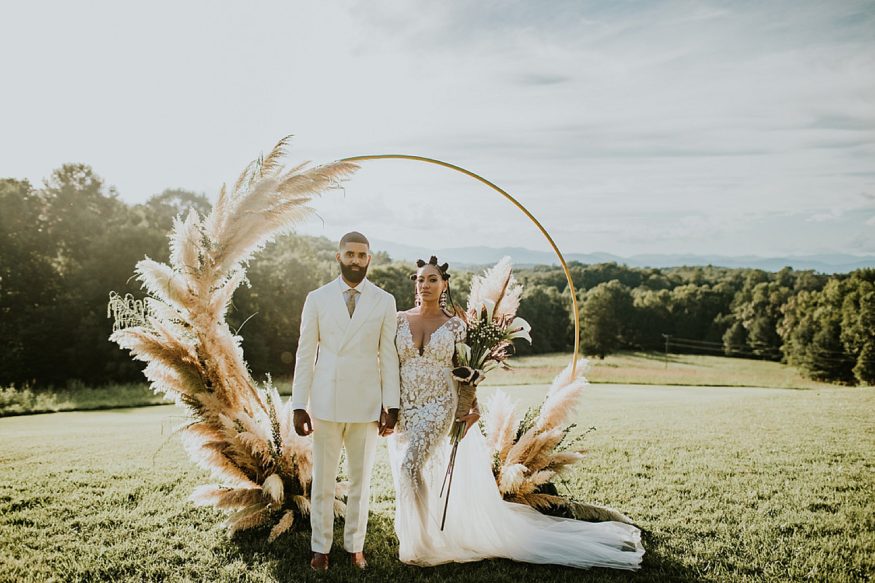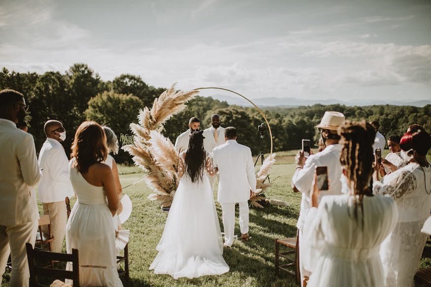 If this were my backyard I think I’d be okay to be quarantined here forever! Roscoe and Matthew embraced the madness of 2020 and opted for a beautiful backyard gathering at his mother’s house in North Carolina overlooking the Blue Ridge Mountains.