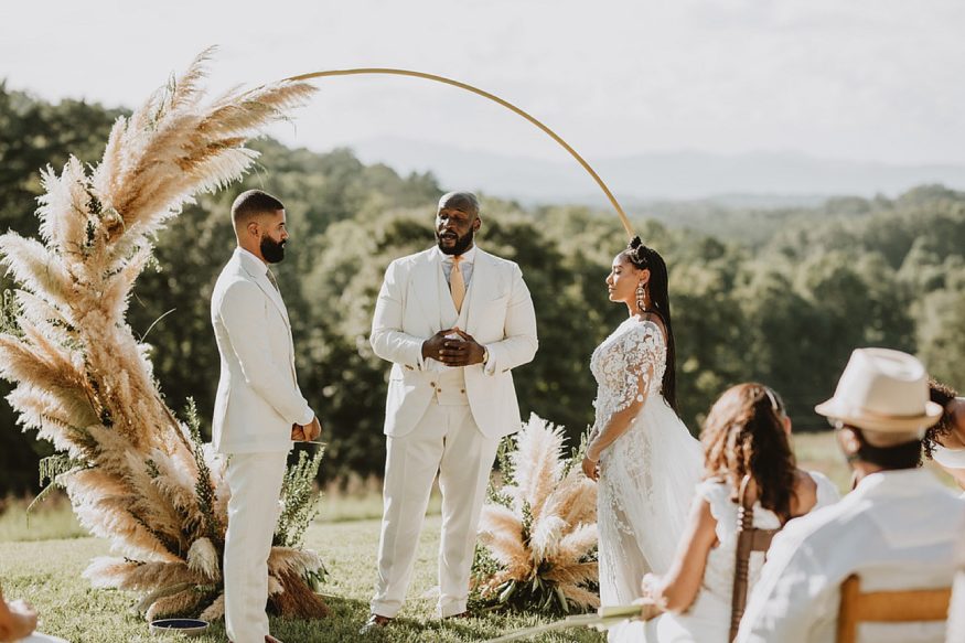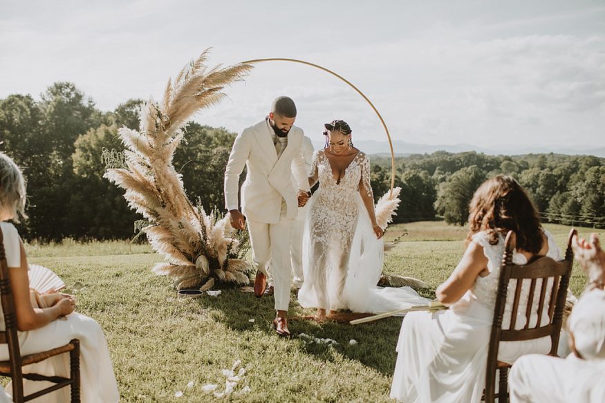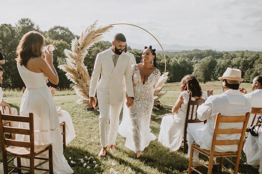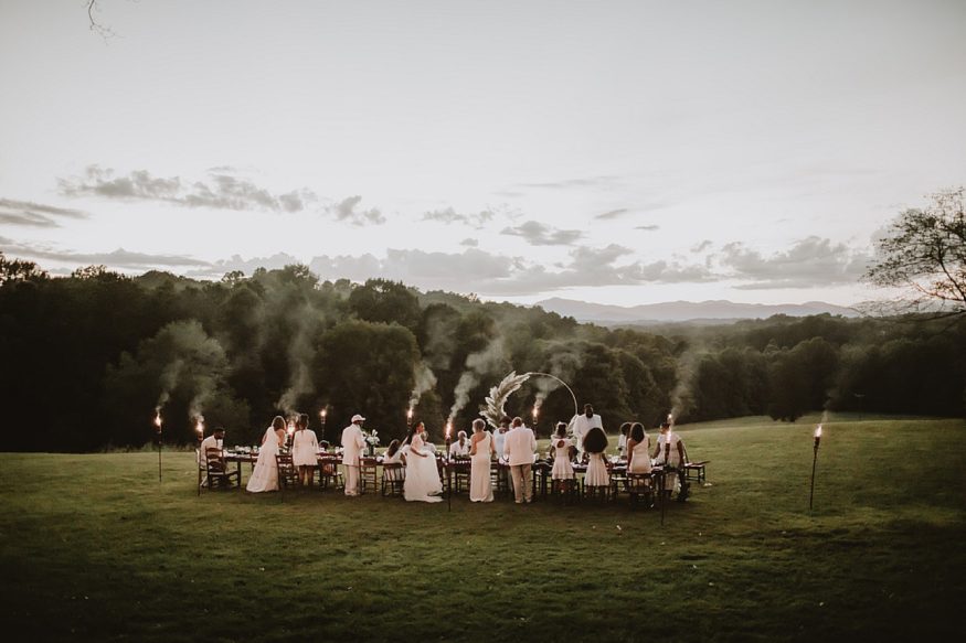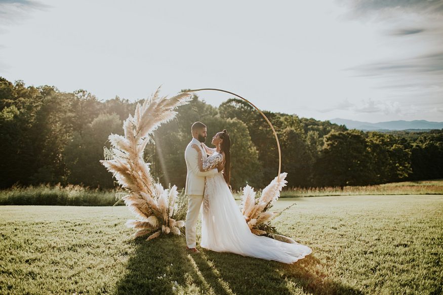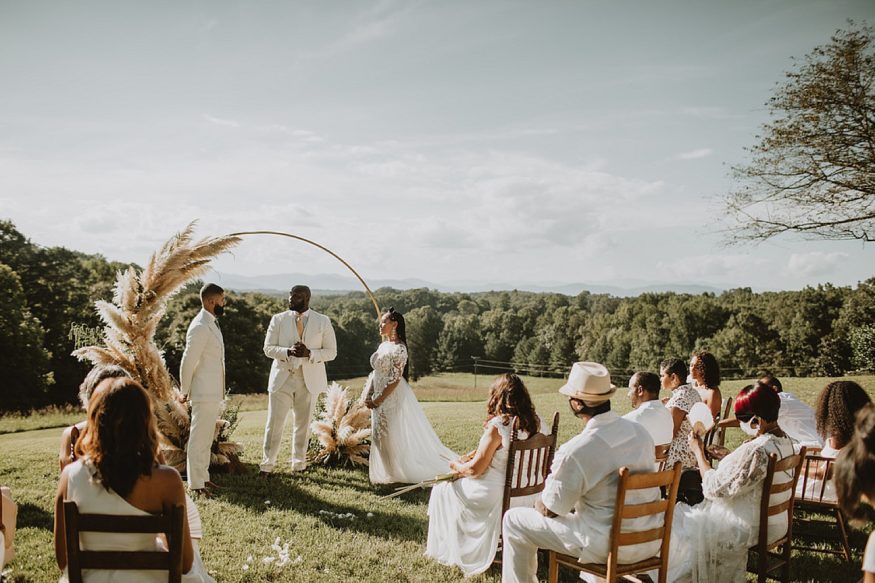 If this were my backyard I think I’d be okay to be quarantined here forever! Roscoe and Matthew embraced the madness of 2020 and opted for a beautiful backyard gathering at his mother’s house in North Carolina overlooking the Blue Ridge Mountains.