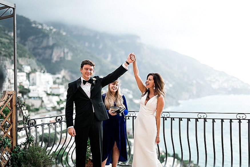 The next day we had the wedding and it was suppose to rain all day, however not a drop happened, just a cloudy day. We were able to have their ceremony on a private balcony overlooking the Amalfi Coast and afterwards walked the city for some amazing editorial style photographs of the couple.