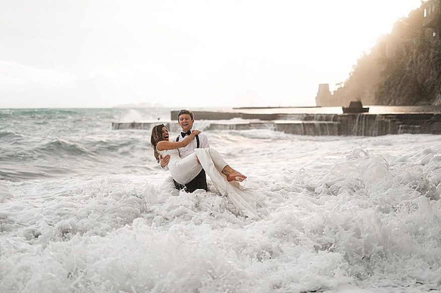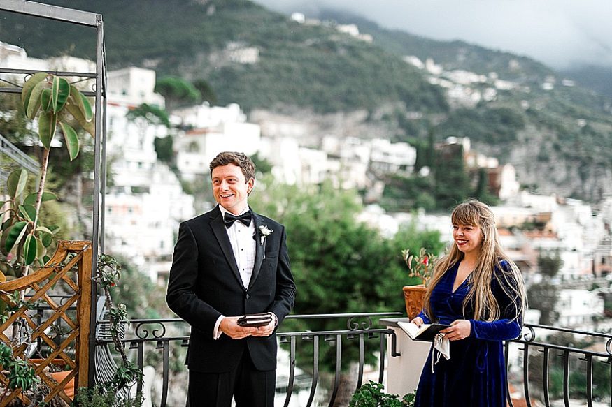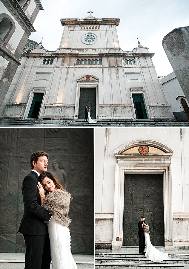 The next day we had the wedding and it was suppose to rain all day, however not a drop happened, just a cloudy day. We were able to have their ceremony on a private balcony overlooking the Amalfi Coast and afterwards walked the city for some amazing editorial style photographs of the couple.