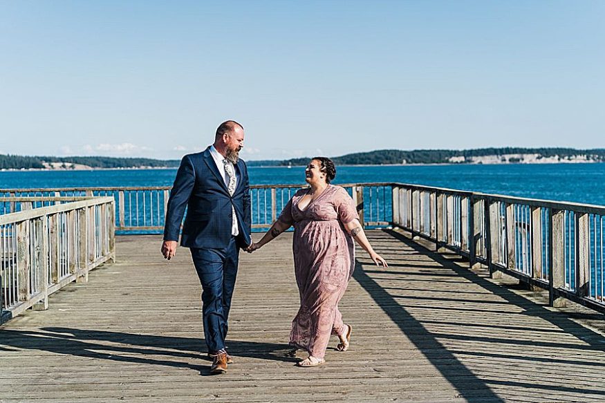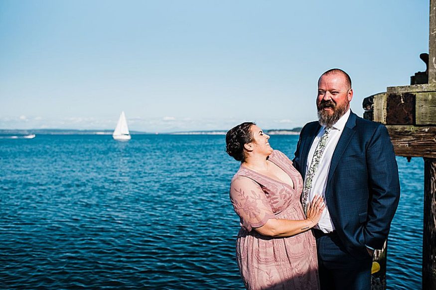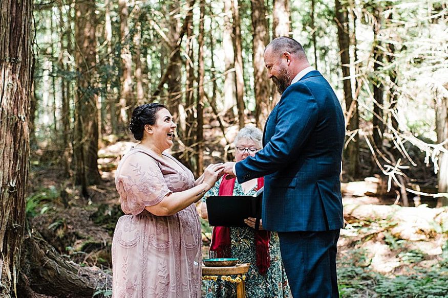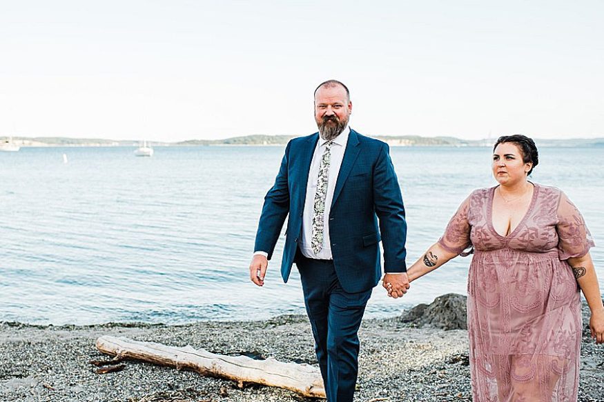“‘We(Marci, Johnny, Corey and I) met up in Port Townsend to capture their vows and explore the area together. Marci rocked a mauve wedding dress, Johnny looked extra dapper in his blue suit and they stunned me with their HANDMADE wedding rings they created together at With These Rings. Their obvious joy and excitement was infectious, and they had us cry laughing basically the entire time.