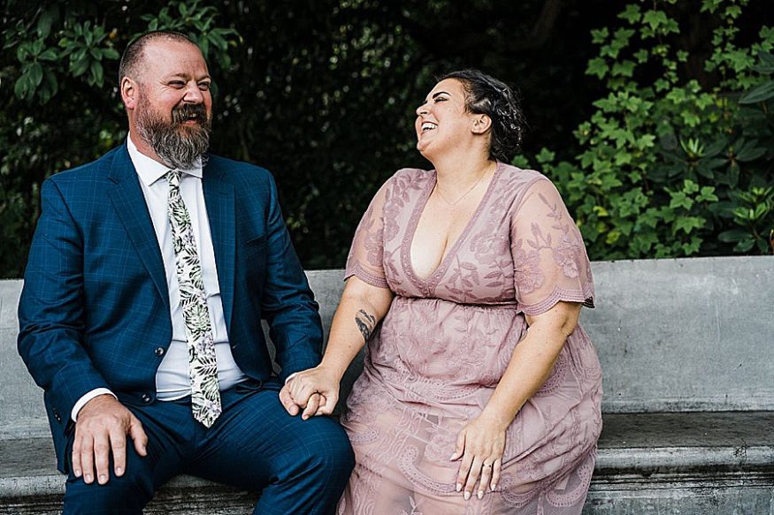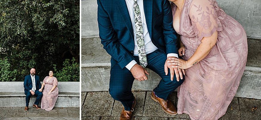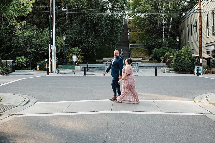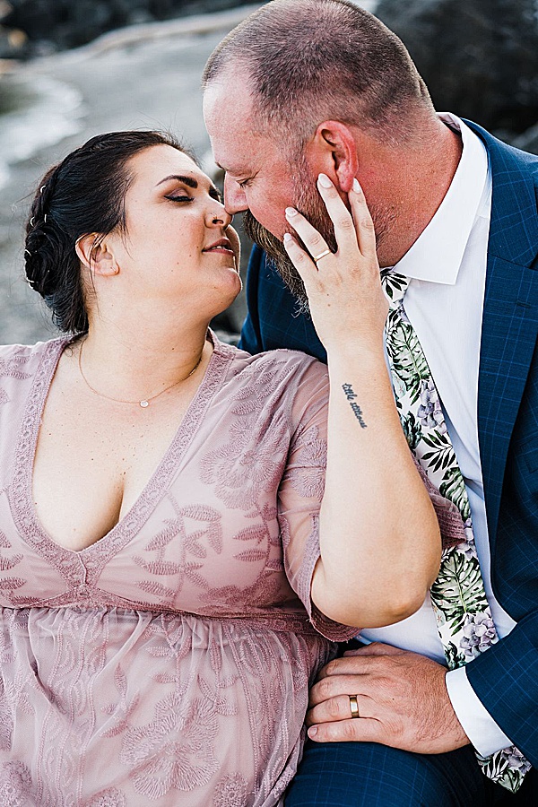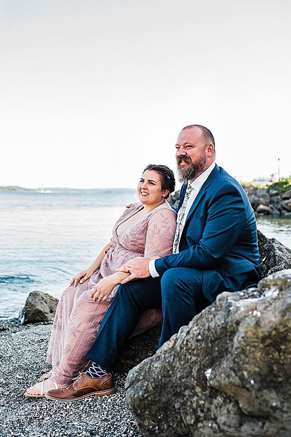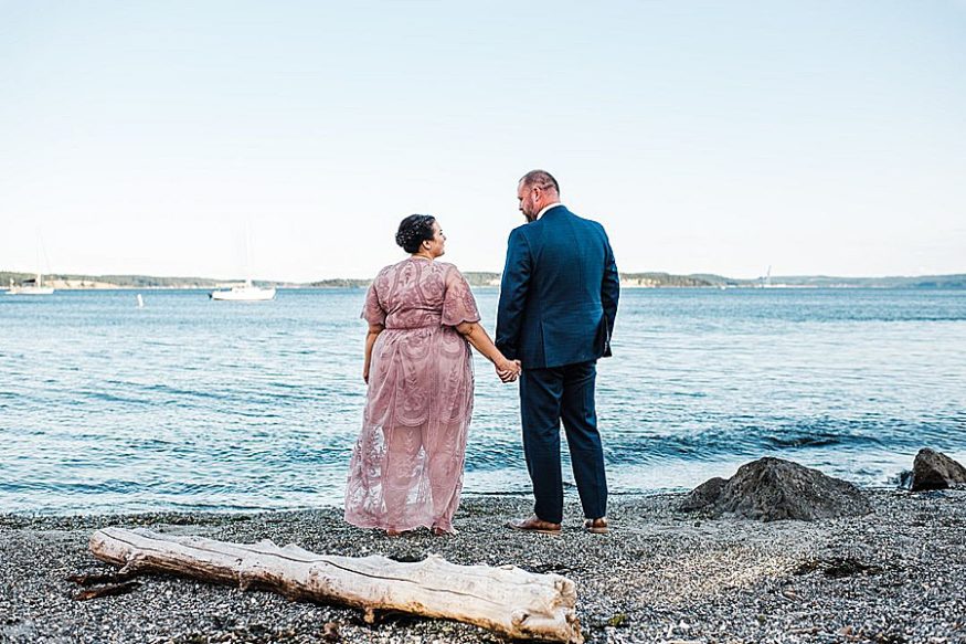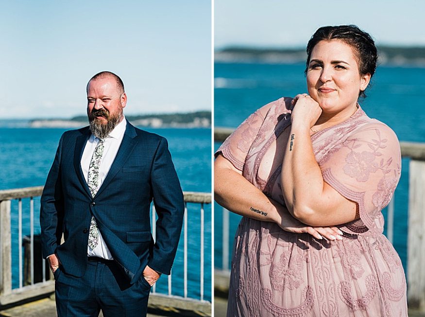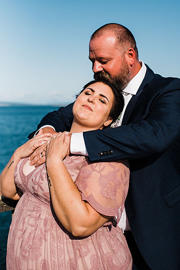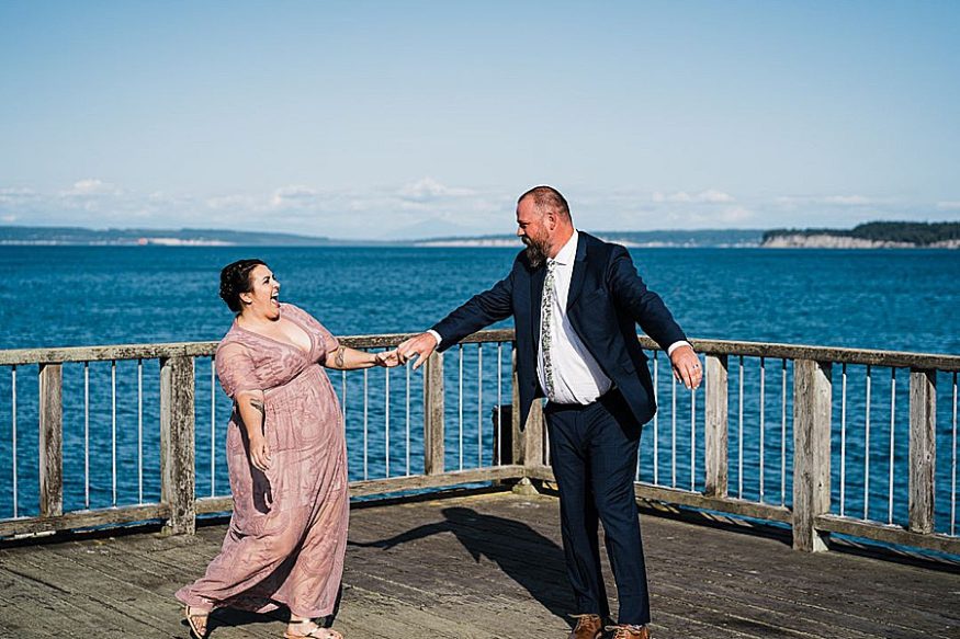 “‘We(Marci, Johnny, Corey and I) met up in Port Townsend to capture their vows and explore the area together. Marci rocked a mauve wedding dress, Johnny looked extra dapper in his blue suit and they stunned me with their HANDMADE wedding rings they created together at With These Rings. Their obvious joy and excitement was infectious, and they had us cry laughing basically the entire time.