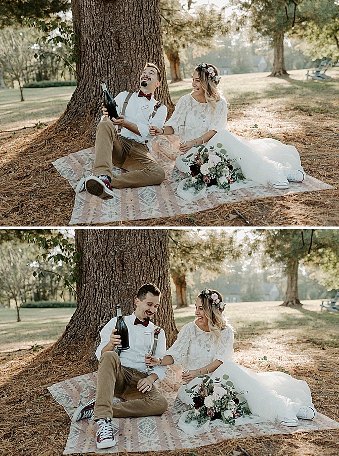 For the decoration, she bought the carpet and picked up the dry grass outside to decorate her ceremony. It was simple but beautiful and all they wanted. The Woolverton Inn even had some champagne ready for them to pop the bottle after their ceremony!”