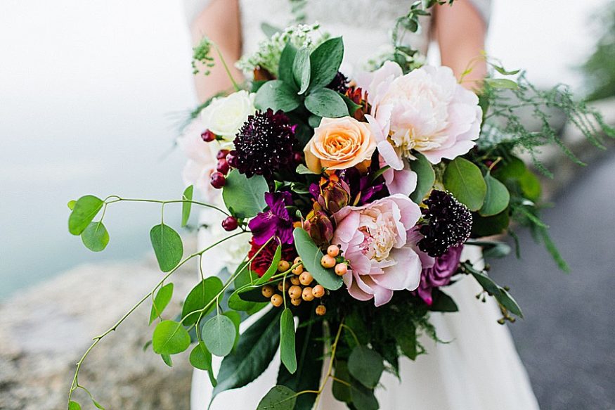We simply preferred an intimate setting over a larger one. Our biggest challenge was definitely the weather. It was rainy and cloudy, and we were going to be on top of a mountain. The day of the wedding, we changed the time of the ceremony twice, in an attempt to avoid rain. It did end up raining a bit, but it turned out perfectly fine and I really love the moodiness of the fog and the mountains in the background.