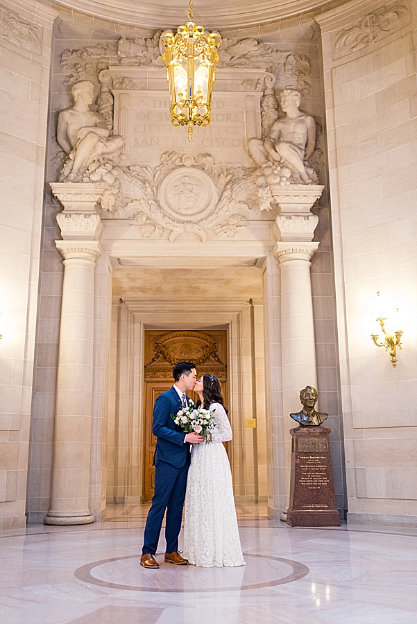 It’s no secret by now that San Francisco City Hall is gorgeous. And today we’re featuring Tyler and April’s tiny wedding that was held there in the Rotunda.