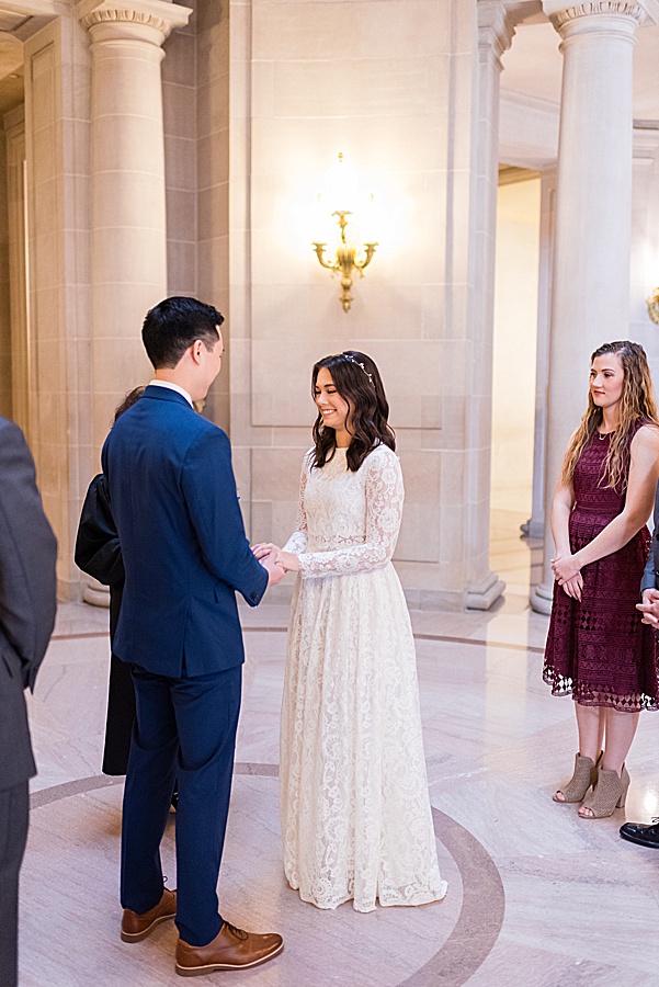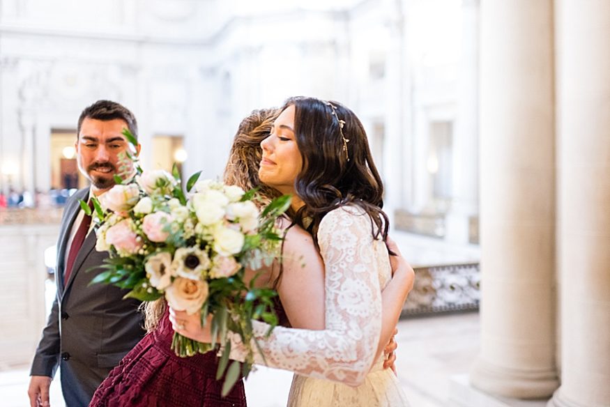 They knew they wanted something small and intimate and had visited SF city hall the year before from Texas. So when the time came it seemed like the perfect option for them. They included their siblings in the ceremony and spread the news with everyone shortly after!