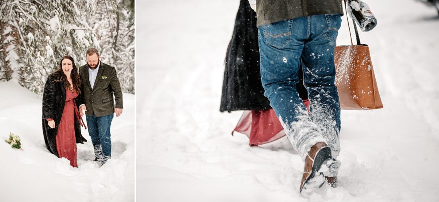 But they rolled with it and married in the falling snow! I love Kari’s red dress against the blanket of fresh white snow. How many people can say they got married literally in snowstorm?!