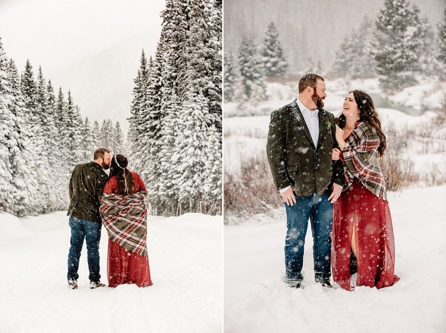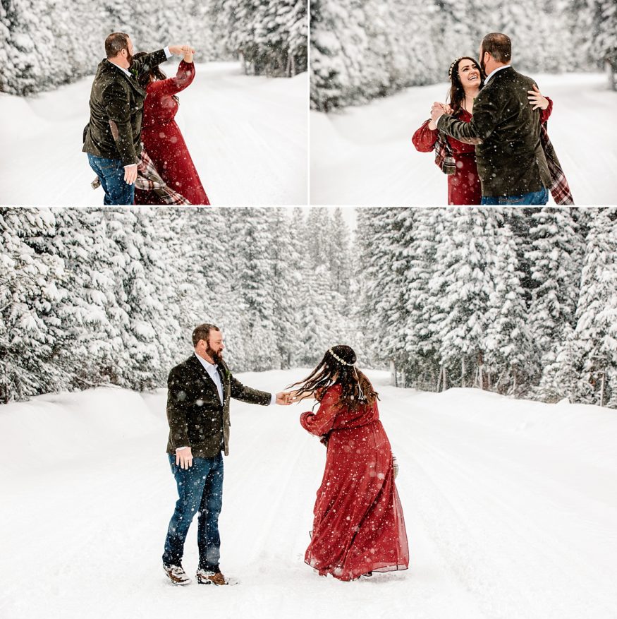 But they rolled with it and married in the falling snow! I love Kari’s red dress against the blanket of fresh white snow. How many people can say they got married literally in snowstorm?!