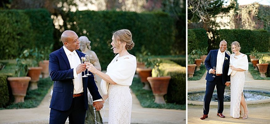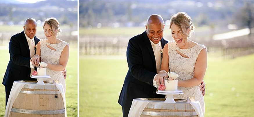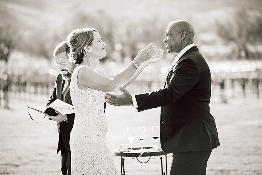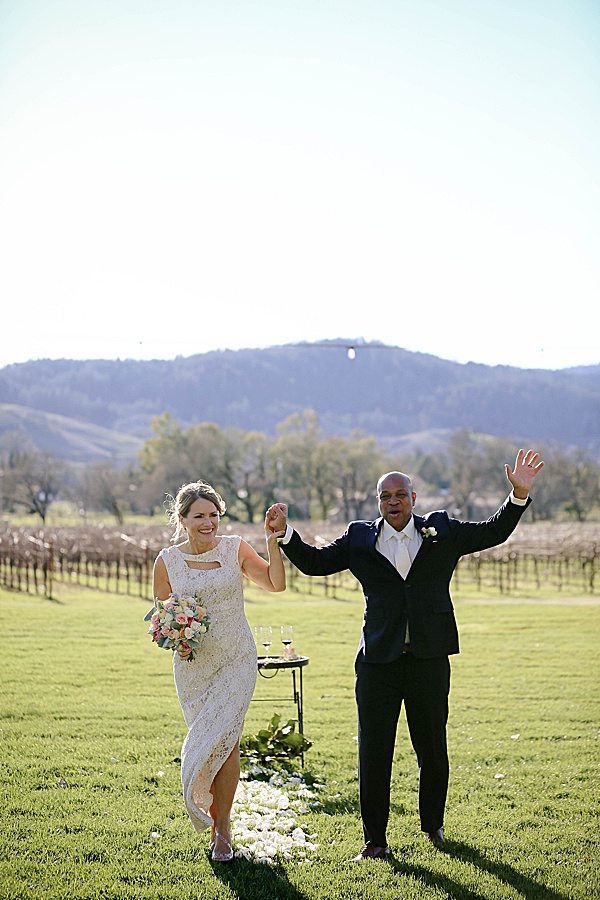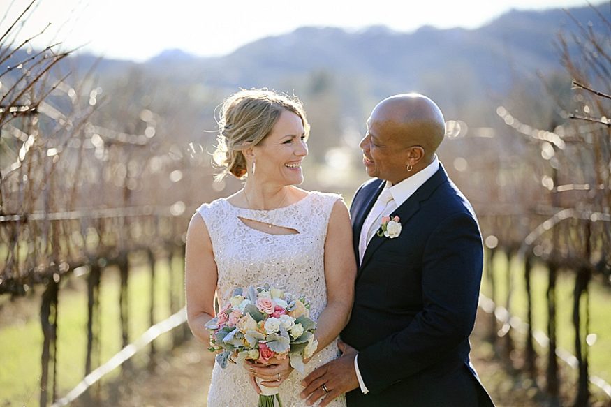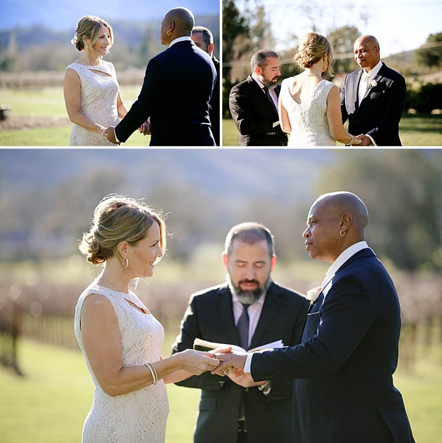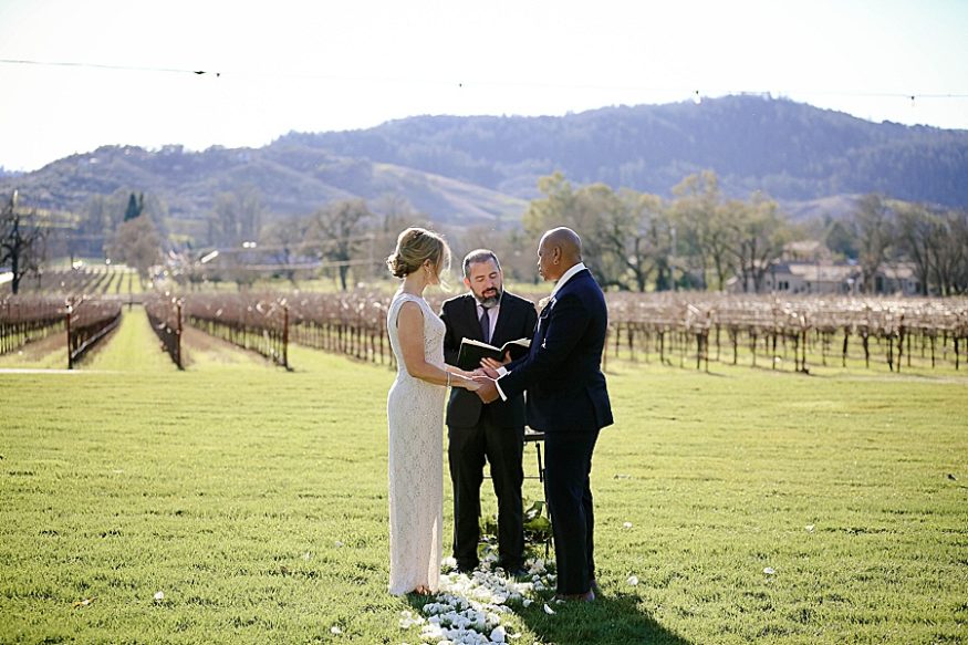 Terrence surprised me with a proposal on December 21st when my brother was visiting from California. Once we decided on the date, we did tell our close friends and relatives. We wanted to make sure my immediate family knew so we would have a chance to celebrate with them while we were in Sonoma. On the day of, my family and best friend were able to do some wine tasting while observing the ceremony from afar. That was perfect because we were able to have privacy for our vows yet my family was able to view the beauty of the ceremony.